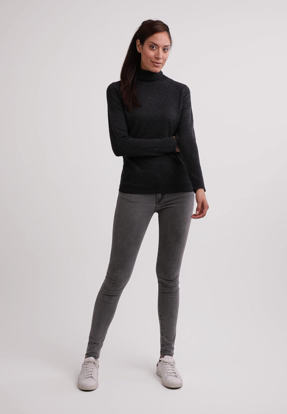 100% Kaschmir Damen Pullover | Sweater Rollkragen 2-fädig XS Dunkelgrau, XS Dunkelgrau