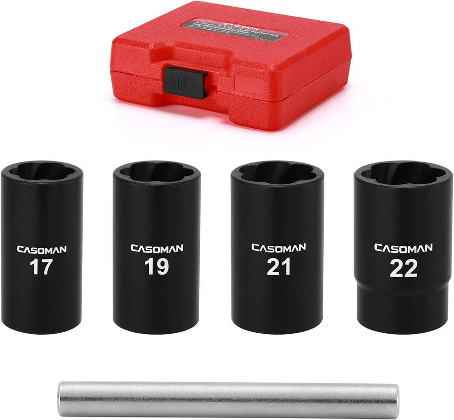 CASOMAN 5 Stück 1/2 Zoll Dr. Dreh-Steckschlüssel-Set, Radmuttern-Entferner-Werkzeug, metrische Schra