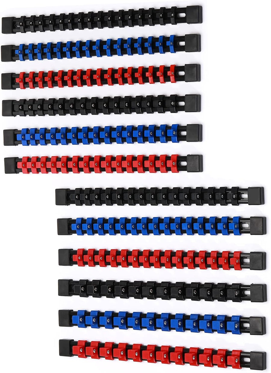 CASOMAN 12PC ABS Socket Organizer, Premium Quality Socket Holders,1/4-Inch x 48 Clips, 3/8-Inch x 90