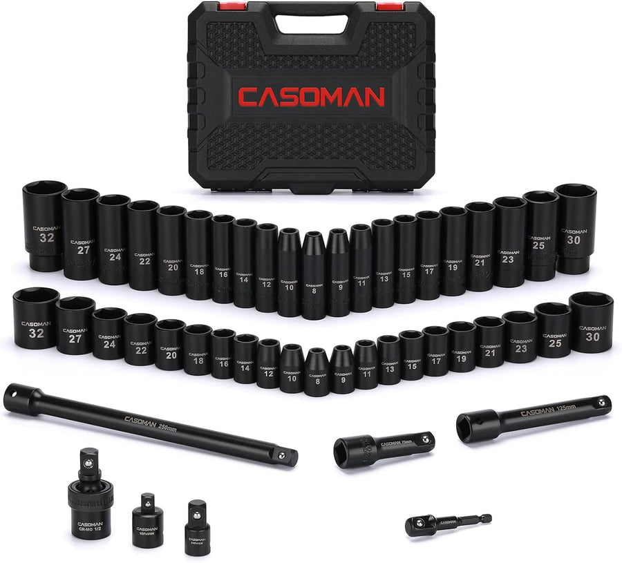 CASOMAN 49PCS 1/2-Inch Drive Impact Socket Set, Deep&Shallow,CR-V, 6 Point, Metric Socket Set, 8mm-3