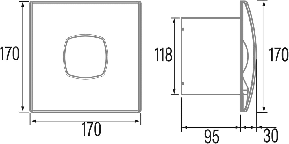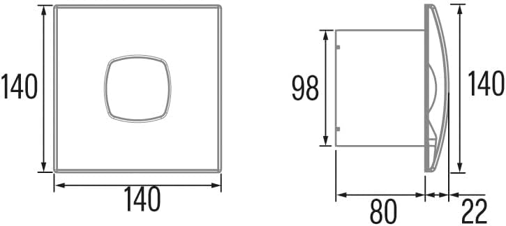 E-100 GTH - Abluftventilator Bad - Serie E Glass Hygro - Glasfront - Zeitschaltuhr Luftfeuchtigkeits