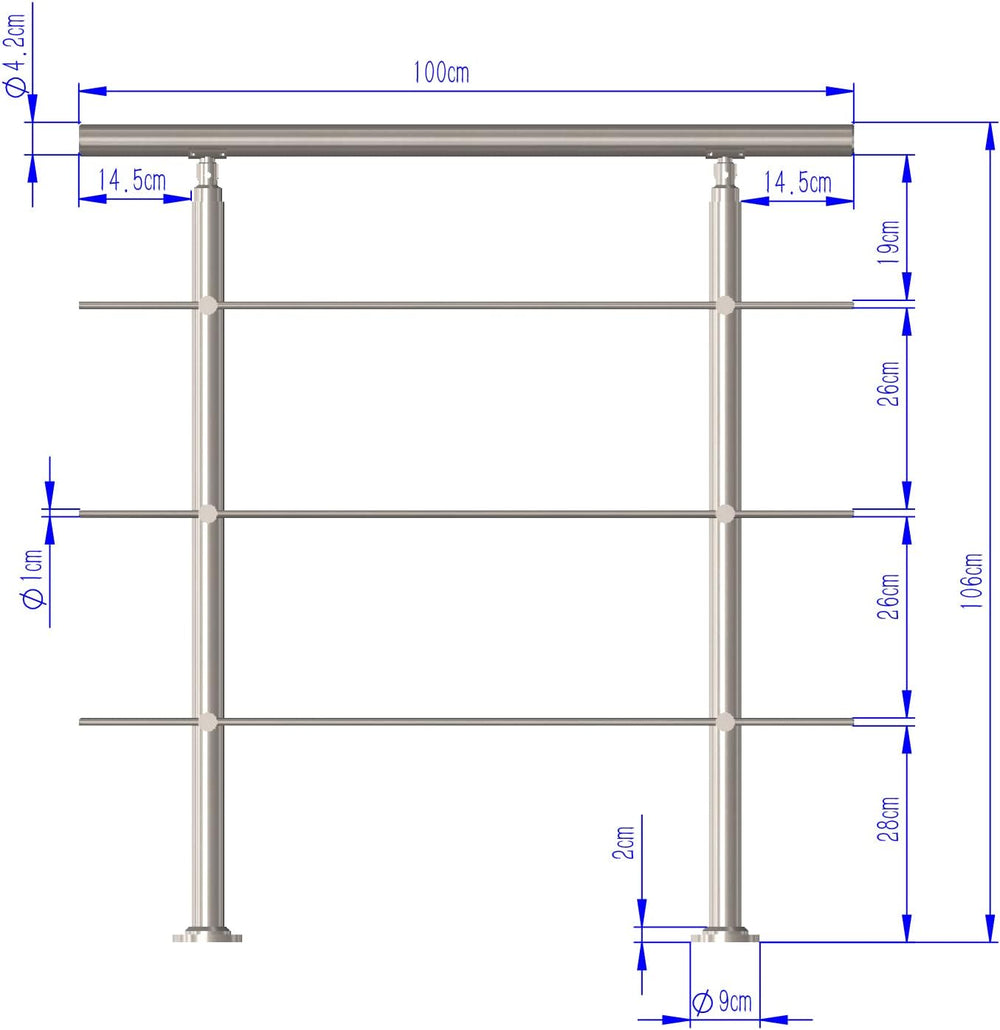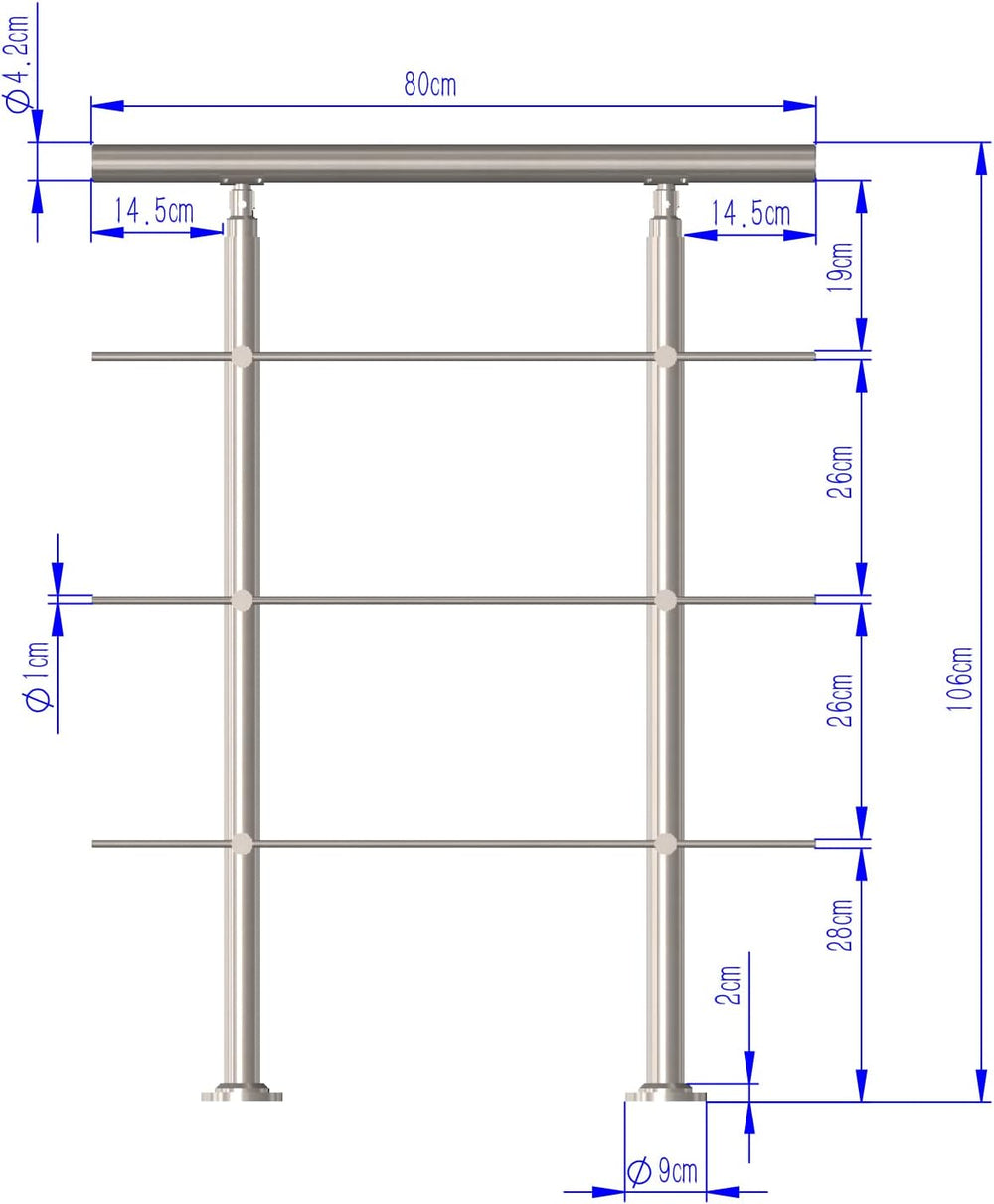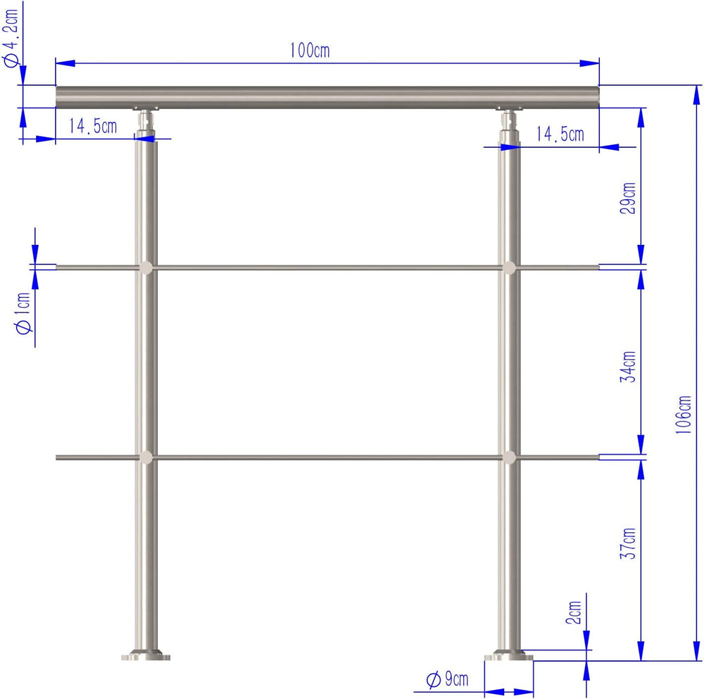 CAVATINY Edelstahl Handlauf Geländer für Treppen Brüstung Balkon mit 4 Querstreben - Innen und Ausse