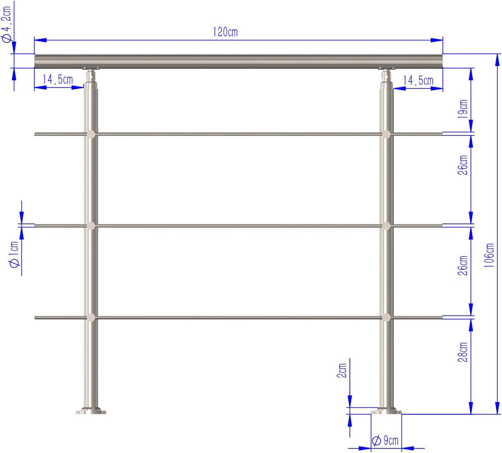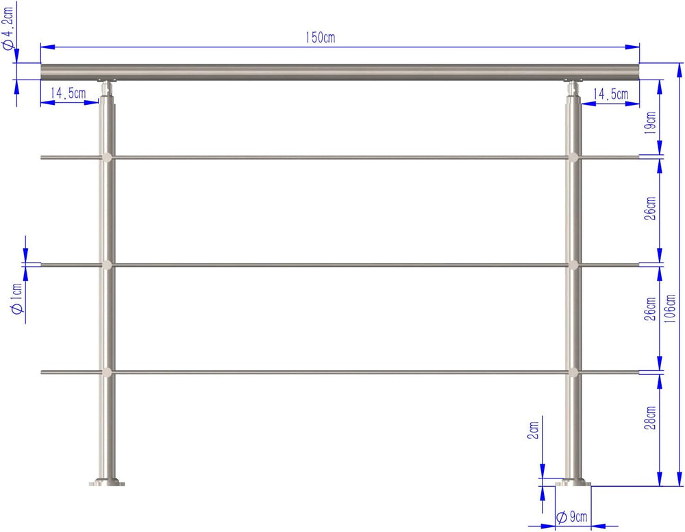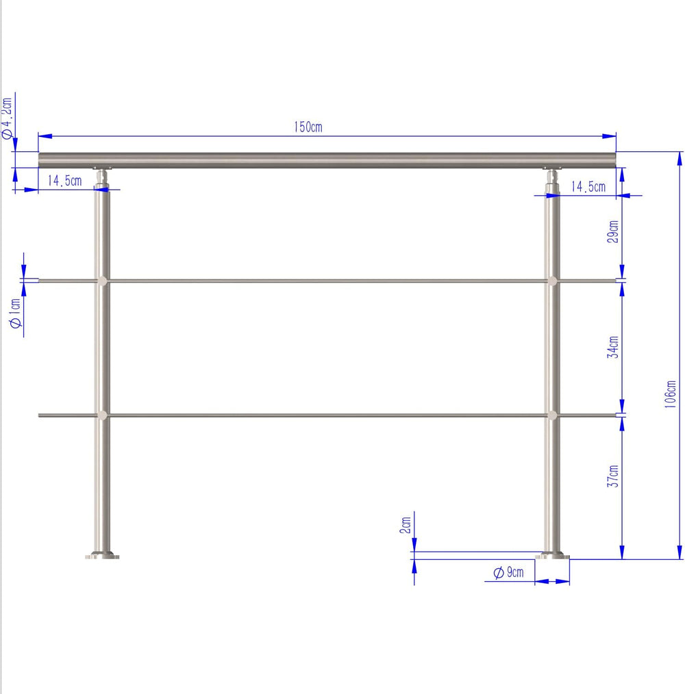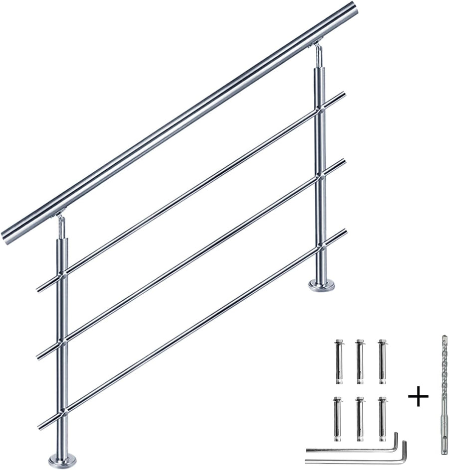 CAVATINY Edelstahl Handlauf Geländer für Treppen Brüstung Balkon mit 4 Querstreben - Innen und Ausse