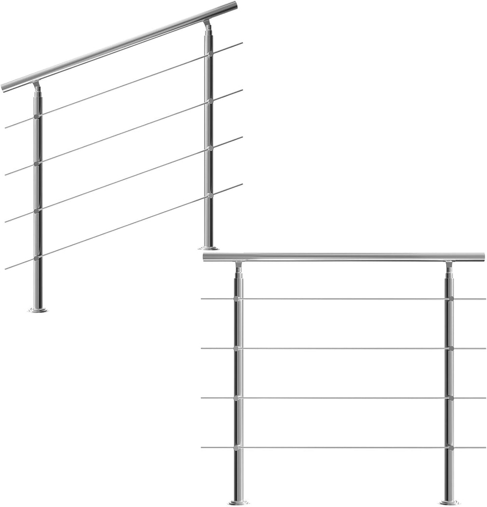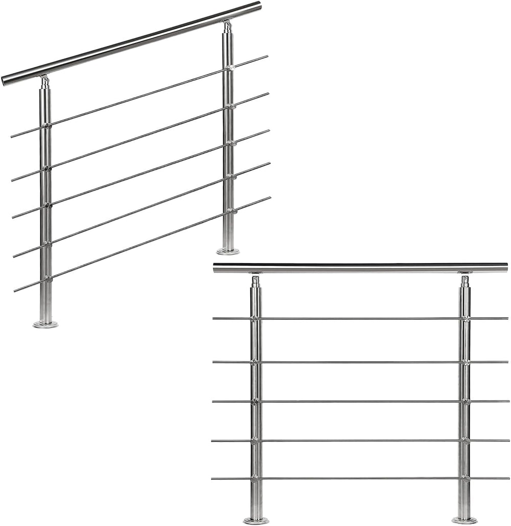 CAVATINY Edelstahl Handlauf Geländer für Treppen Brüstung Balkon mit 5 Querstreben - Innen und Ausse