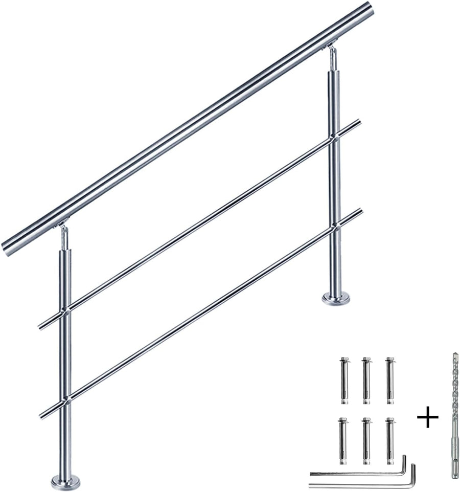 CAVATINY Edelstahl Handlauf Geländer für Treppen Brüstung Balkon mit 3 Querstreben - Innen und Ausse
