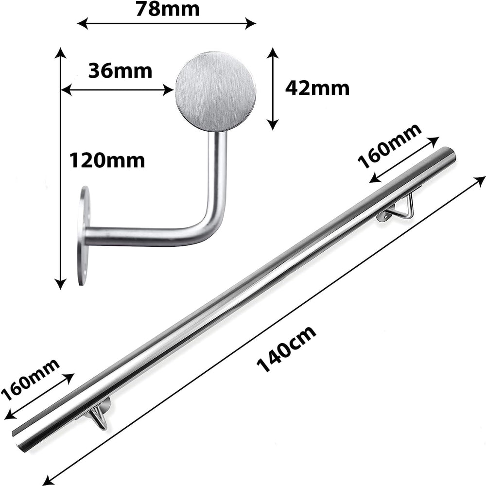 CAVATINY Edelstahl Handlauf Geländer für Treppen Brüstung Balkon - Wandhandlauf Wandhalterung - Inne
