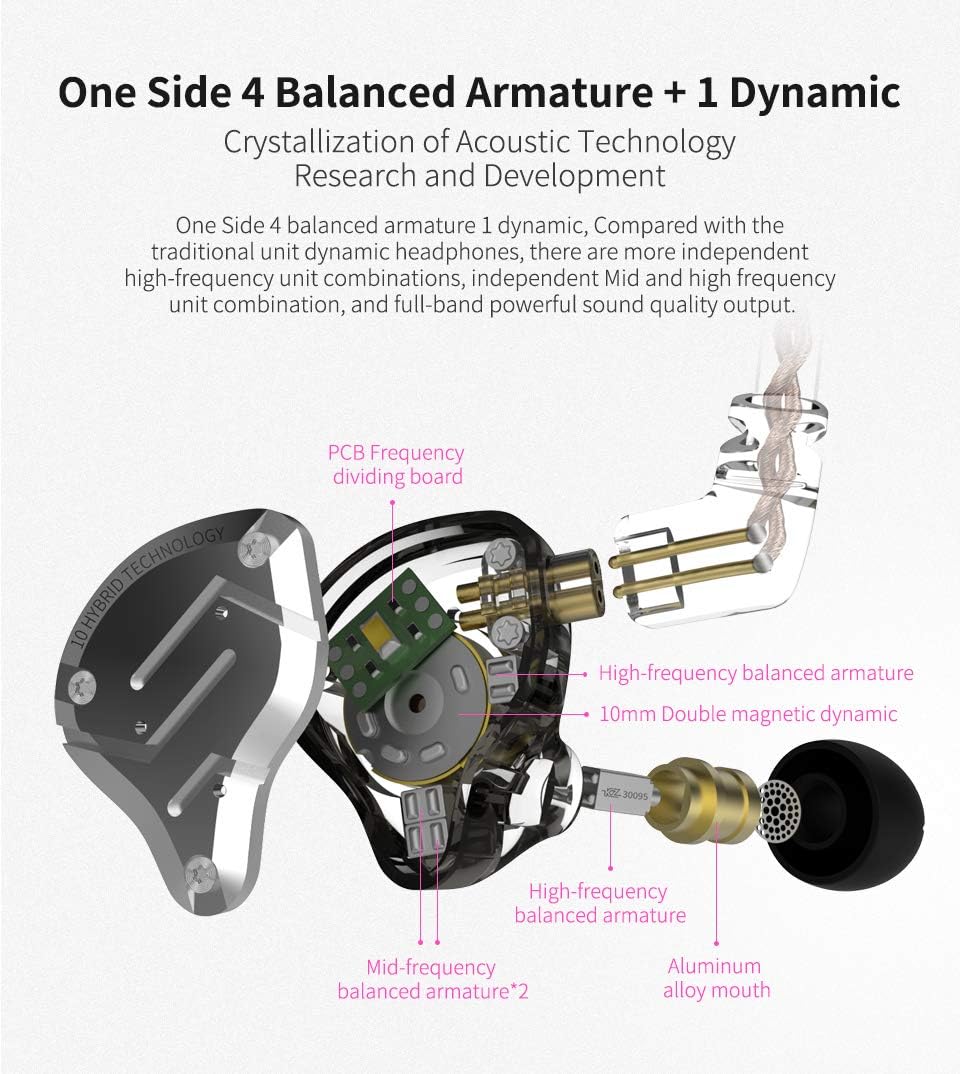 KZ ZS10 Pro 4BA+1DD Im Ohr Kopfhörer HiFi Clear Bass Musiker Ohrhörer Kopfhörer Noise Cancelling Mon