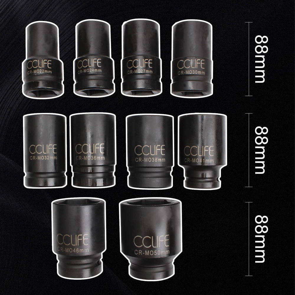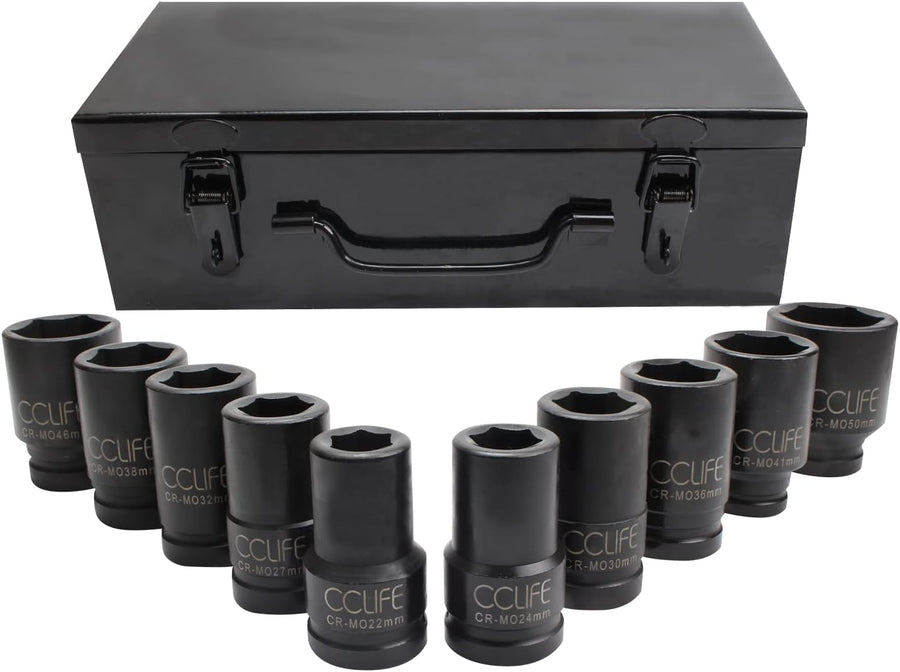 CCLIFE 10tlg 3/4 zoll Kraft Schlagschrauber Nüsse Sechskant Nuss Schlagnuss 22-50MM lang Steckschlüs