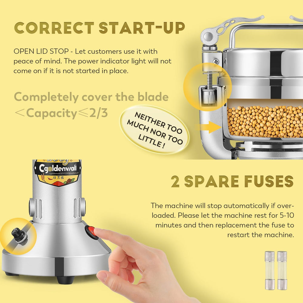 CGOLDENWALL Getreidemühle Elektrische 30-300 Mesh Superfein Mühle für Kräuter/Getreide/Nüsse/Samen 2