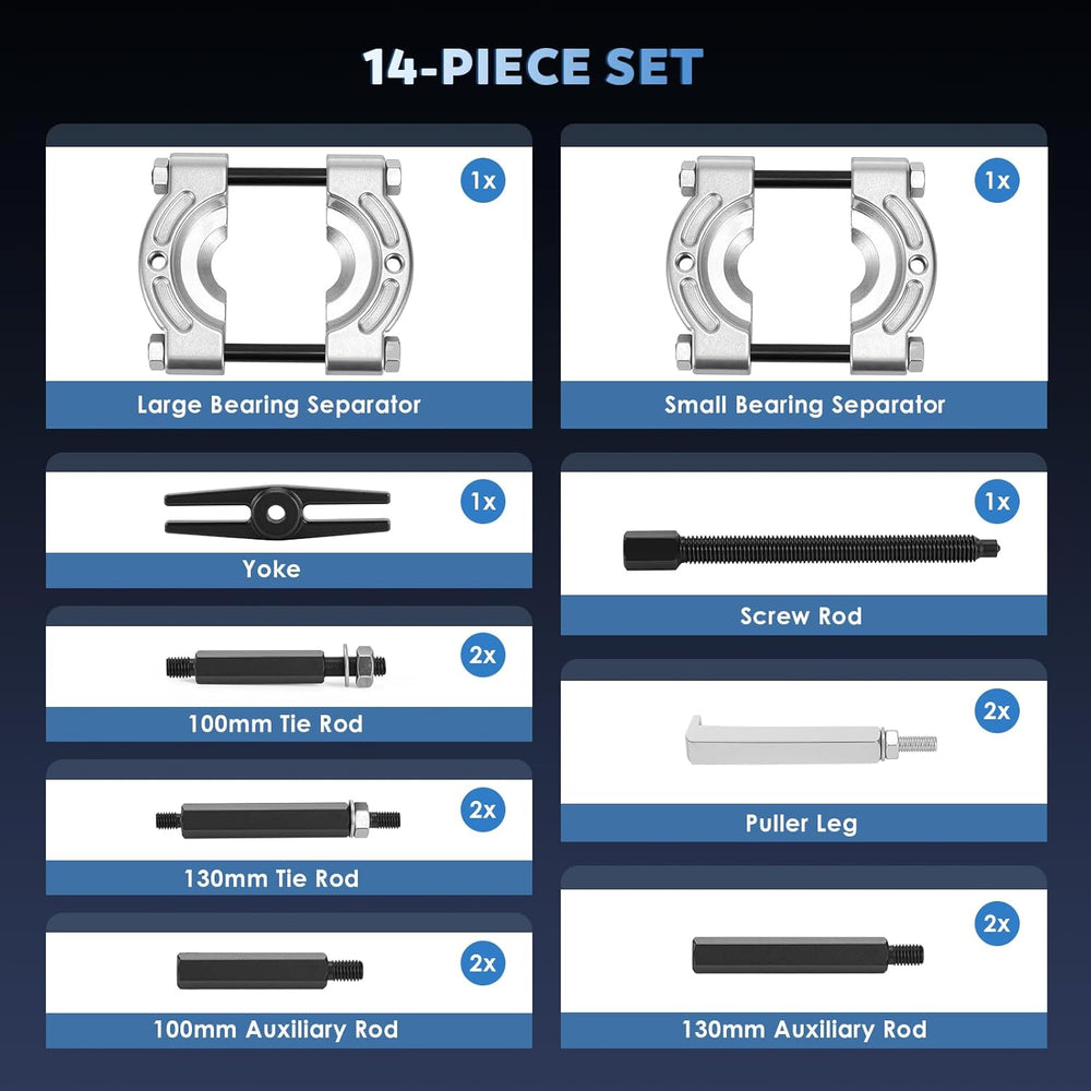 CGOLDENWALL 14 TLG Lagerabzieher Set, für Lager von 35-75mm, Tragkraft 5T, für die Wartung von Radna