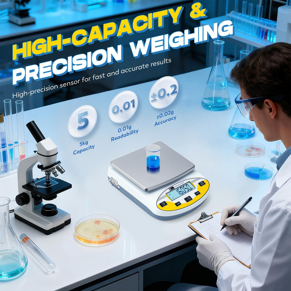 CGOLDENWALL Laborwaage durch Präzise Kalibrierung mit 5000g,0.01g Genauigkeit Digitale Analytische E