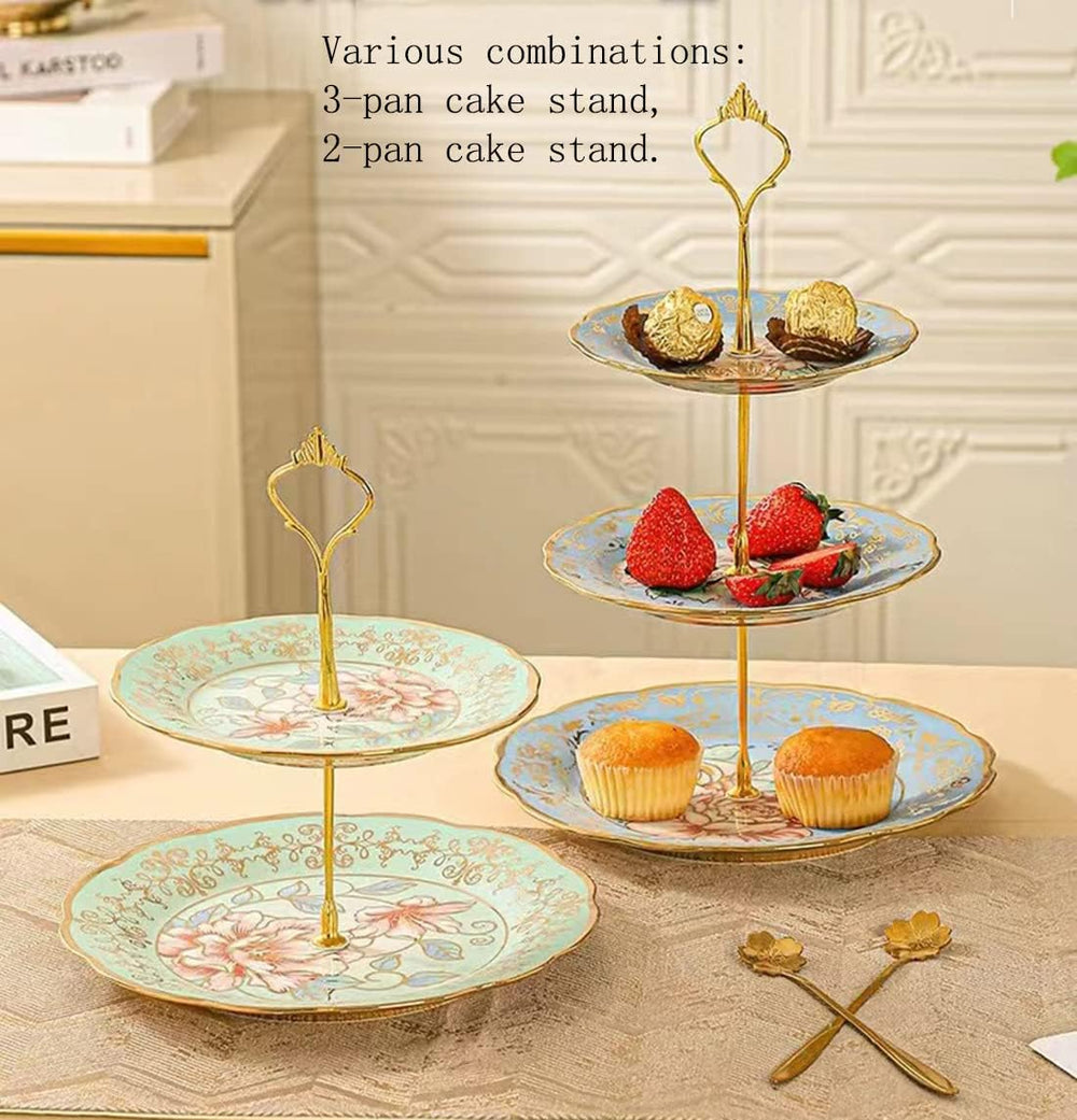 CHANJOON 3-stöckiger Keramik-Kuchenständer im Vintage-Stil mit schönem klassischem Rosenmuster, Lebe