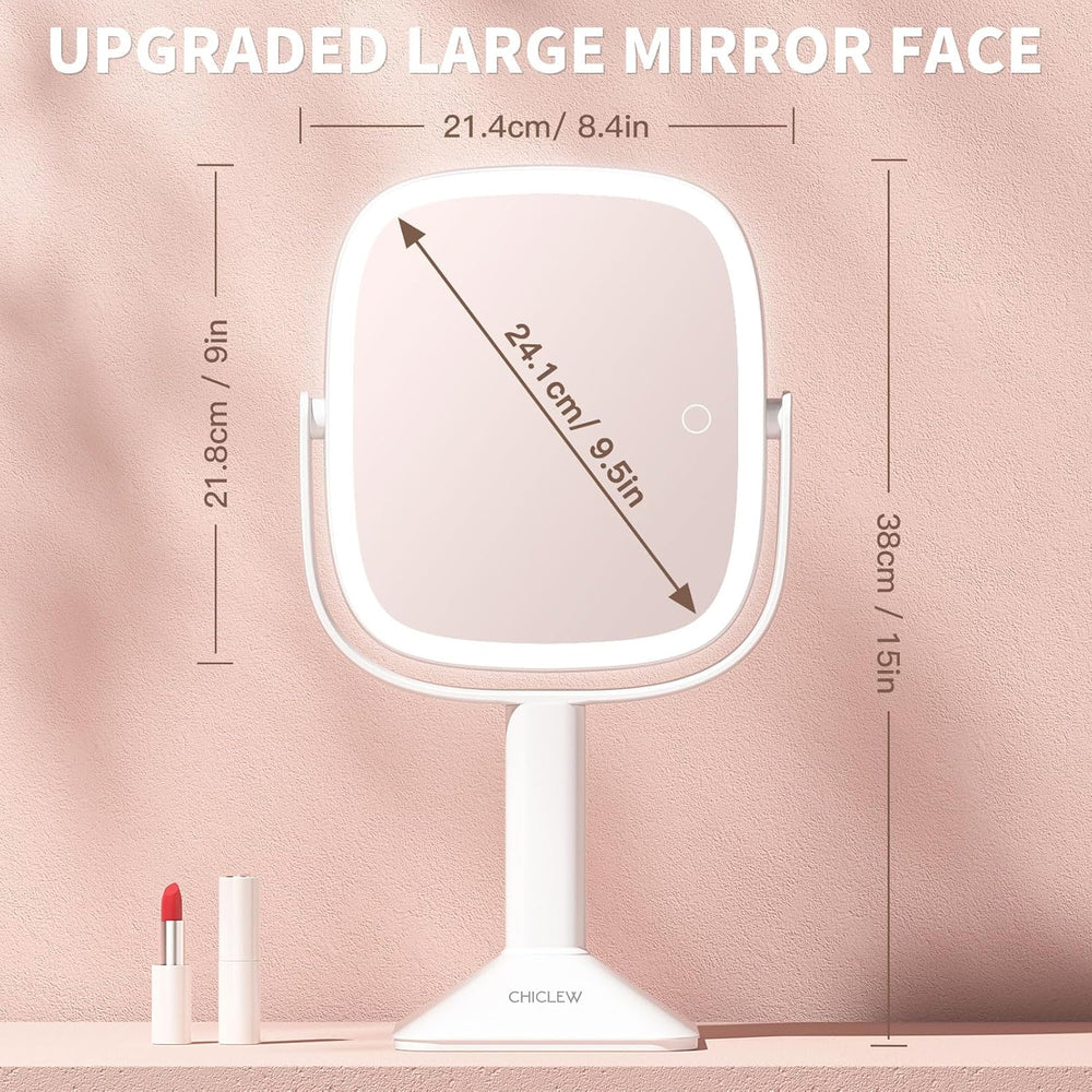 CHICLEW 9.5'' Grosse Schminkspiegel mit Beleuchtung, 1X/12X Wiederaufladbarer Kosmetikspiegel mit Be