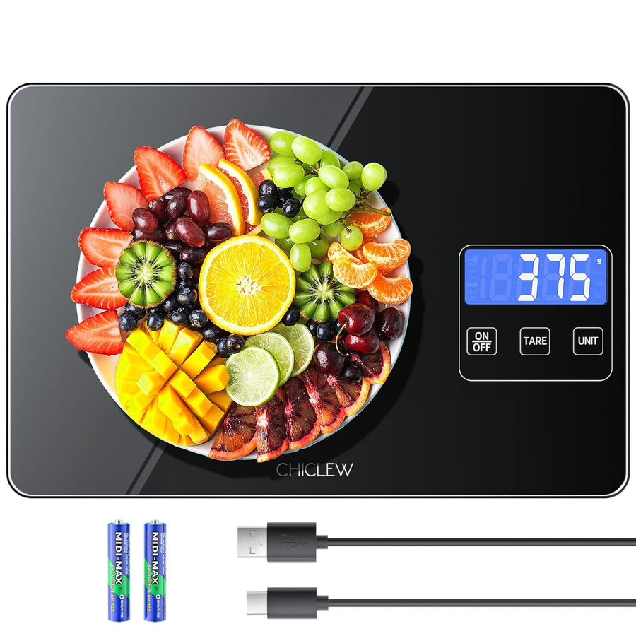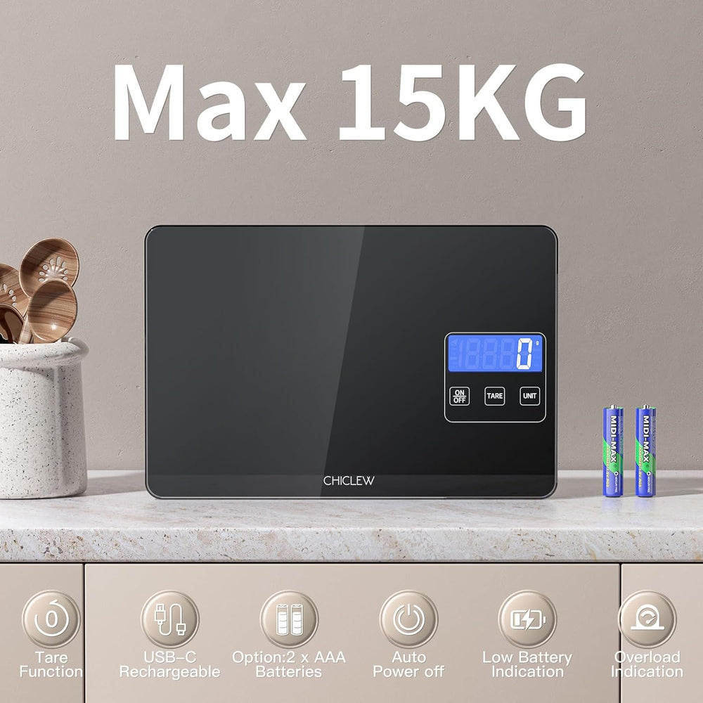 Wiederaufladbare Digitale Küchenwaage, 15KG Elektronische Waage Küche mit 5 Umschaltbaren Einheiten