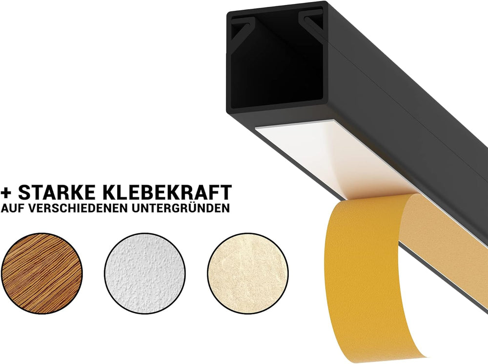 20m Kabelkanäle Selbstklebend Kabelkanal Schwarz mit Schaumklebeband fertig für die Montage (16x16mm