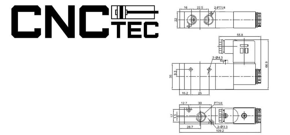 5/3 Wege Pneumatikventil 1/4" 12 Volt DC CNCTEC EcoLine 5/3 Wegeventil (5/3 Wege - 1/4" - 12 Volt DC