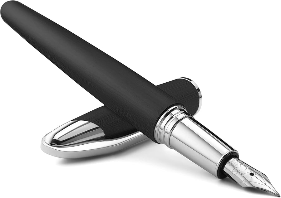 Colibri Equinox Füllfederhalter - Gebürsteter Schwarzes Stahl Und Chrom-Akzenten - Edel Füller - Boc