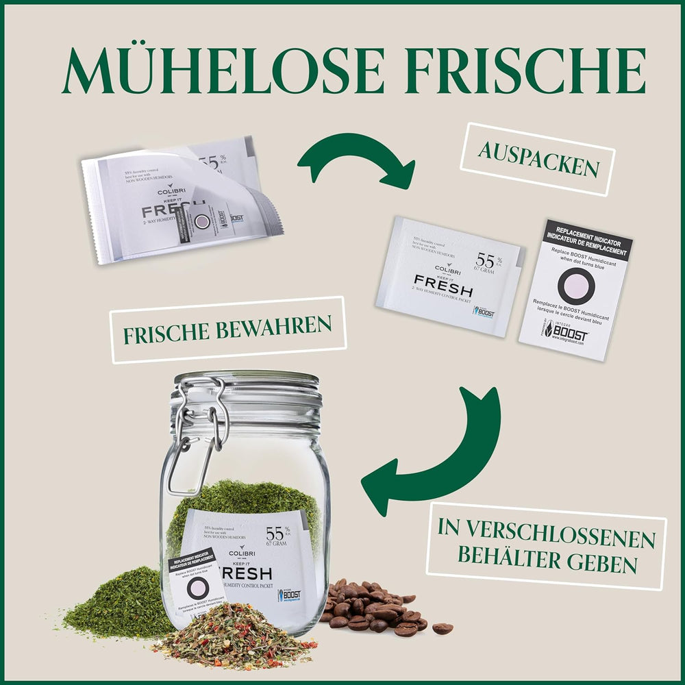 Colibri Fresh 2-Wege-Feuchteausgleich-Pads - 12er Pack à 4g zur Lagerung von Kräutern, Instrumenten