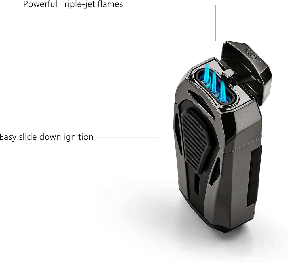 Colibri Boss Sturmfeuerzeug mit Dreistrahl jetflamme | Integrierter Zigarrenabschneider | Feuerzeug