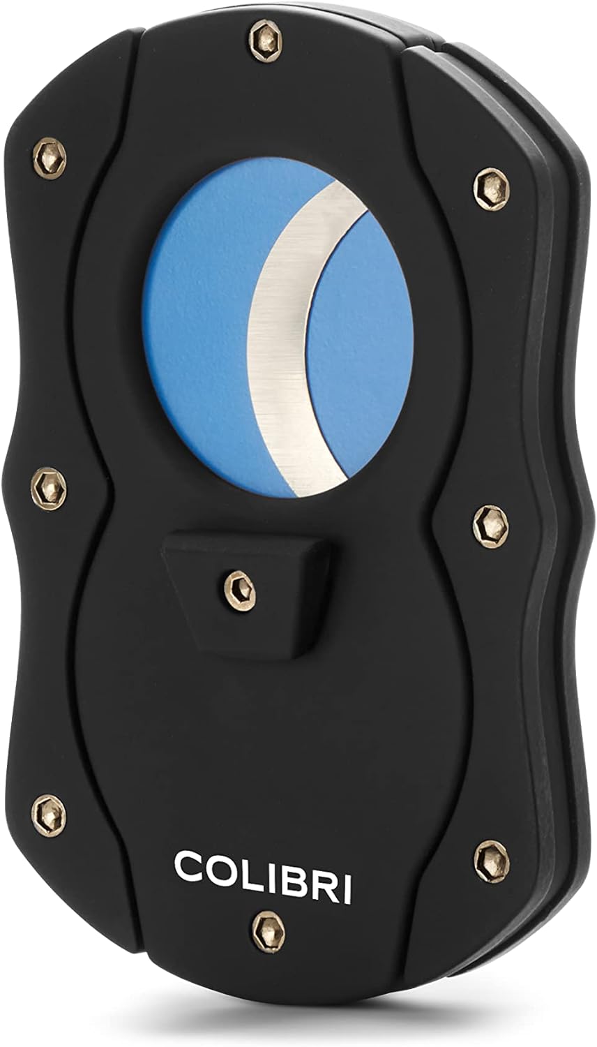 Colibri Cut | Doppel-Guillotine-Zigarrenschneider | Schwarz mit Blauen Klingen |Federauslöser | Bis
