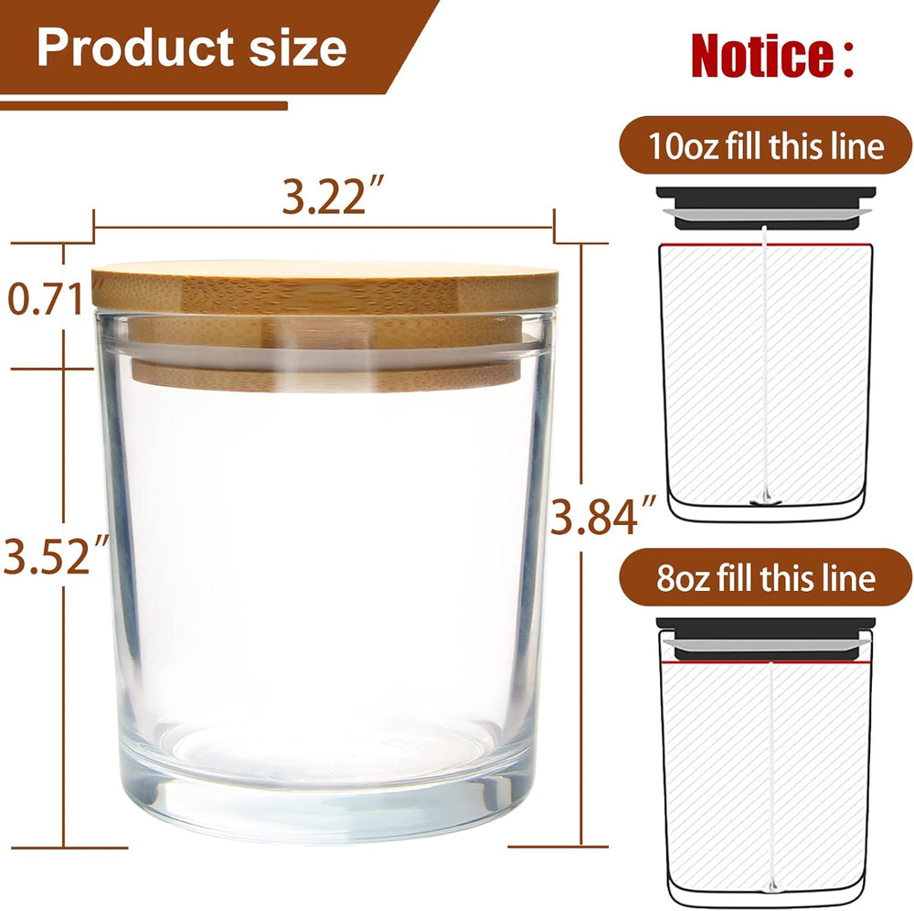 CONNOO 12 Stück 284 ml klarem Glas-Kerzengläser mit Bambusdeckel für die Herstellung von Kerzen, lee