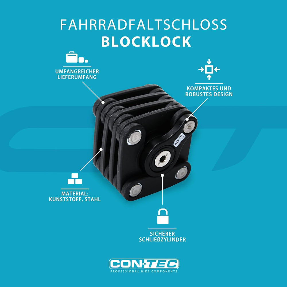 CONTEC Fahrrad-Faltschloss BlockLock, Länge 64 cm, Aus gehärtetem Stahl, Mit Halterung, Hochsicher,