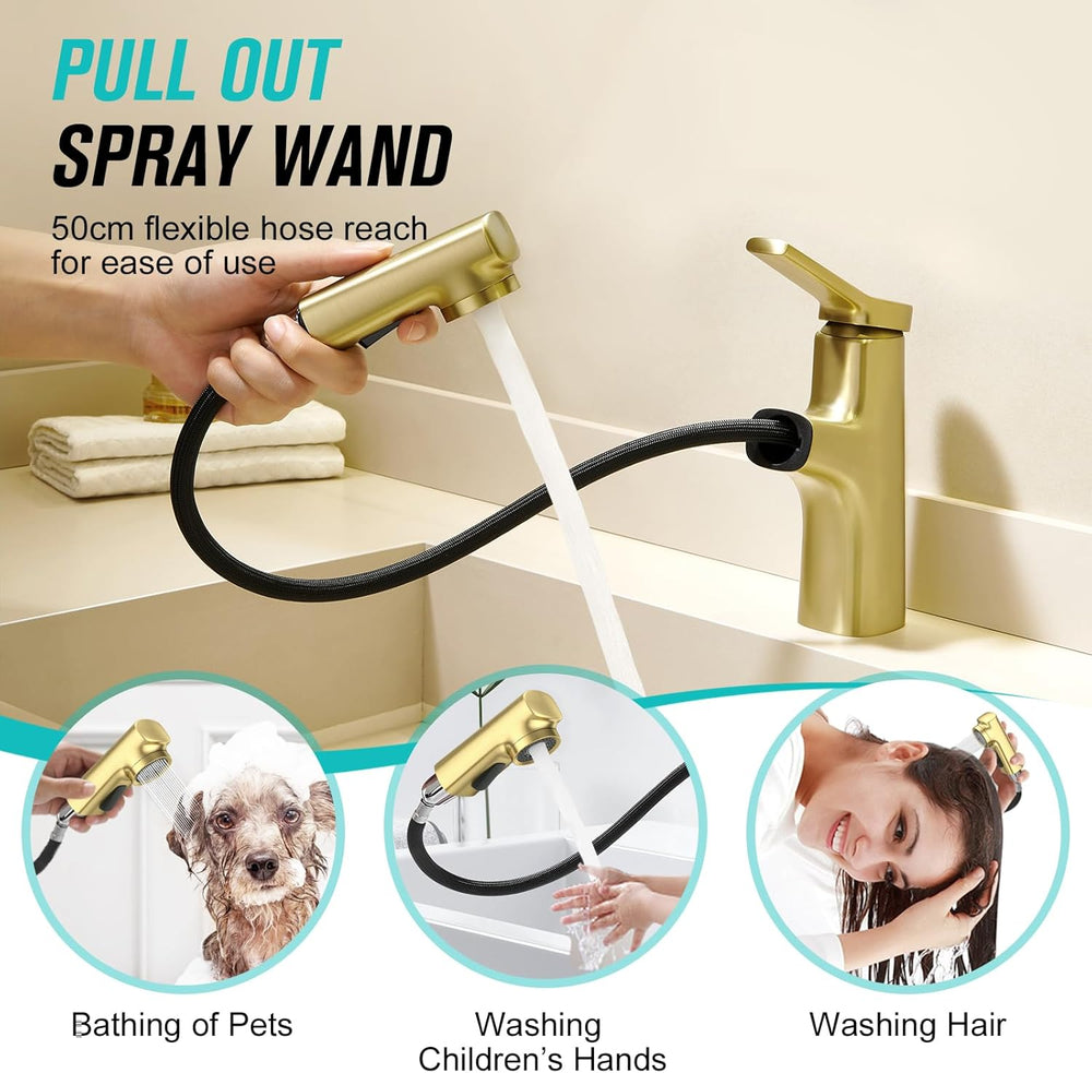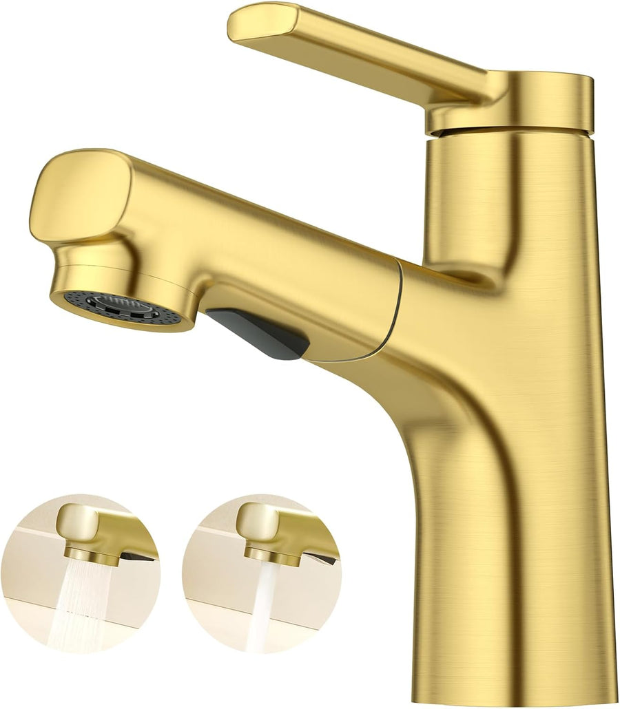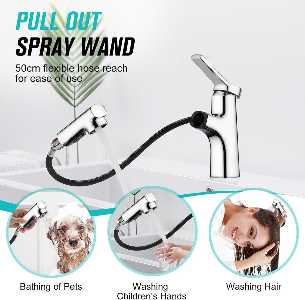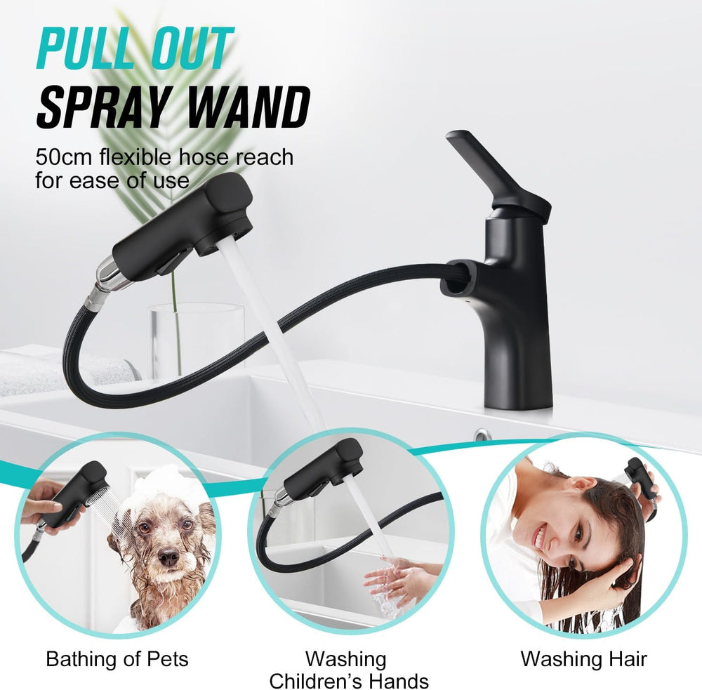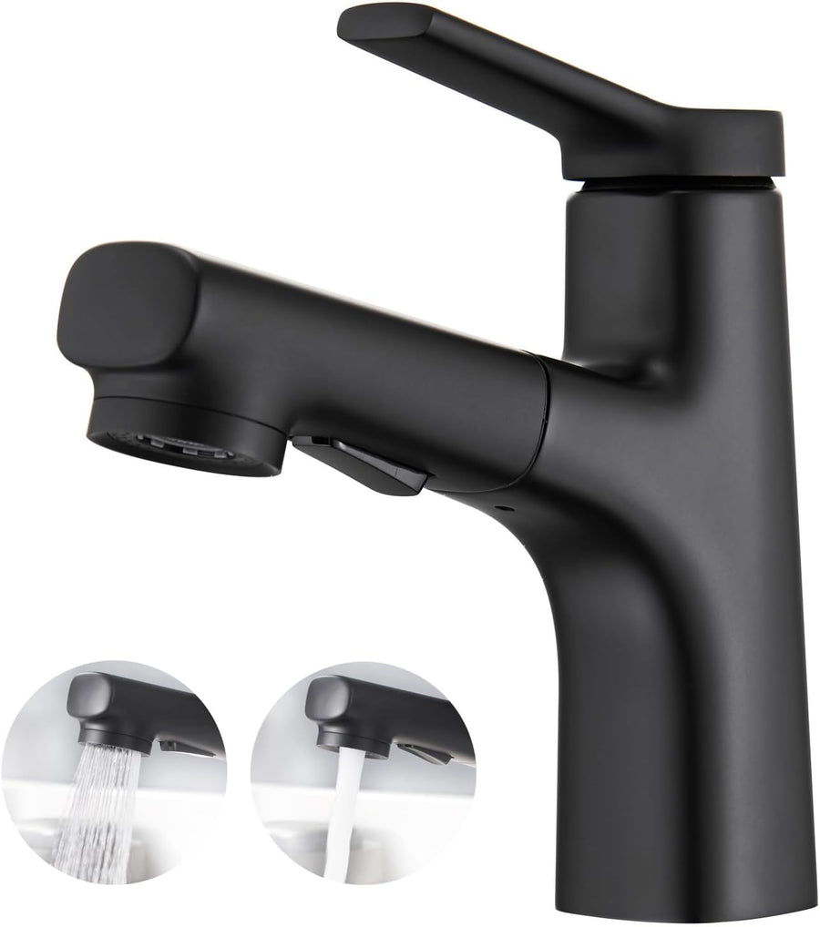 CREA Modern Waschtischarmatur Badezimmer mit 2 Wasserstrahlarten Brause ausziehbar, Einhebelmischer