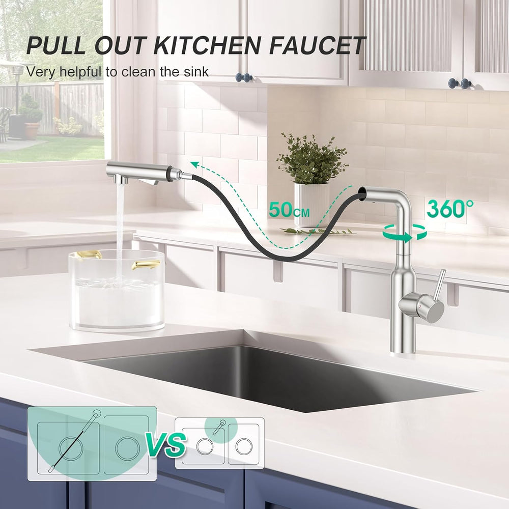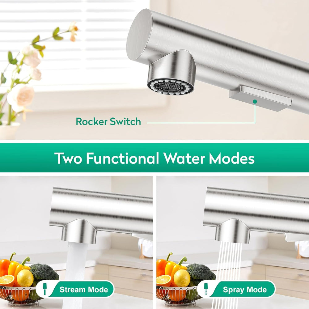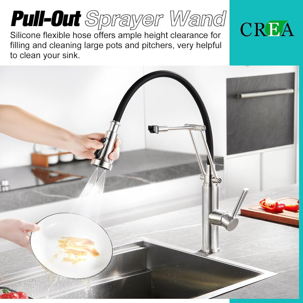 CREA Wasserhahn Küche mit 2 Funktionen Brause, Küchenarmatur mit Ausziehbarer Brause, 360° Drehbare