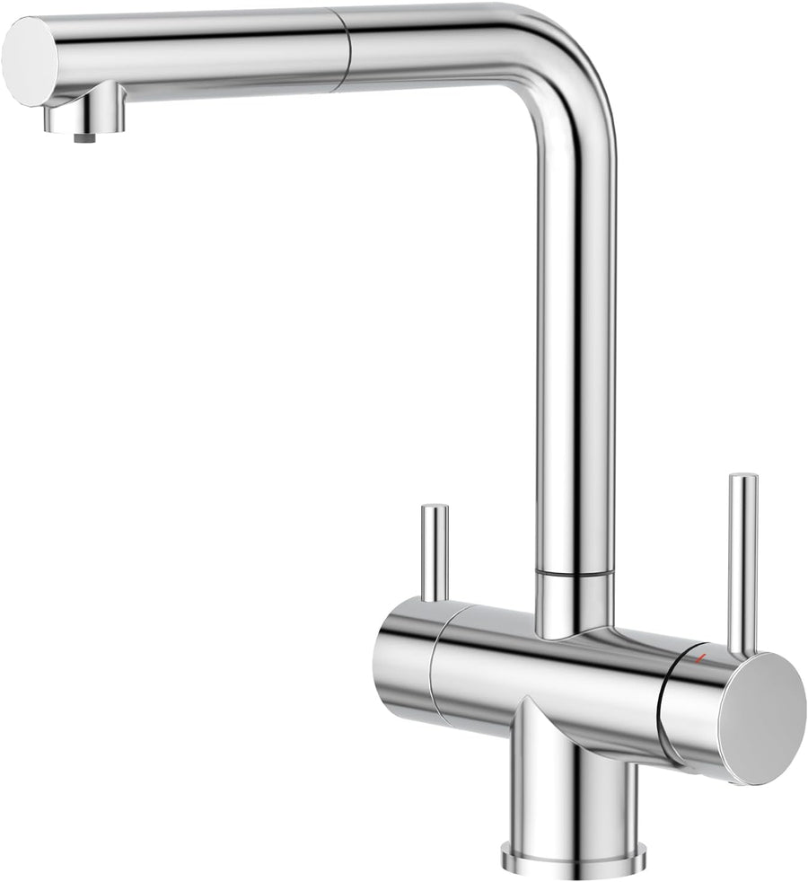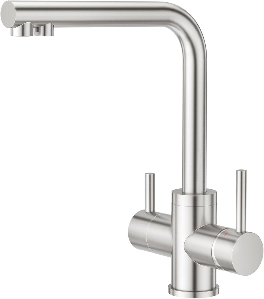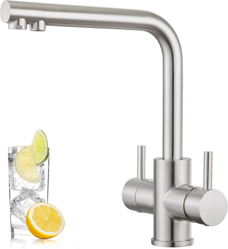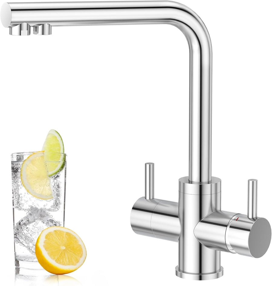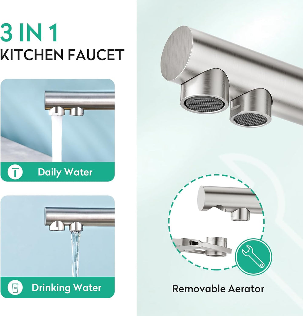 CREA 3 Wege Wasserhahn Küche, 360° Drehbar Küchenarmatur, 3 in 1 Mischbatterie für Wasserfilter, Tri