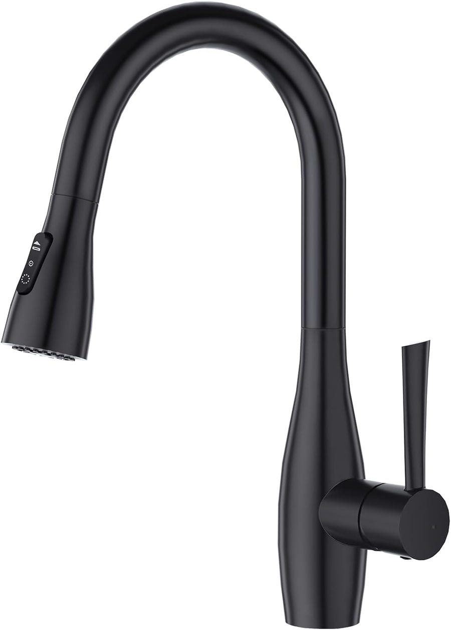 CREA Wasserhahn Küche mit 3 Funktionen Brause, Schwarz Küchenarmatur mit Ausziehbarem Brause, 360° D