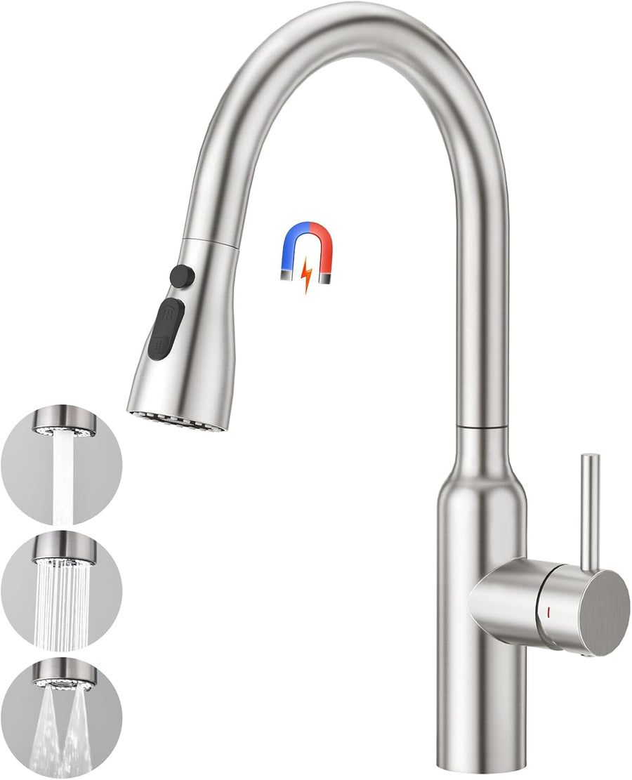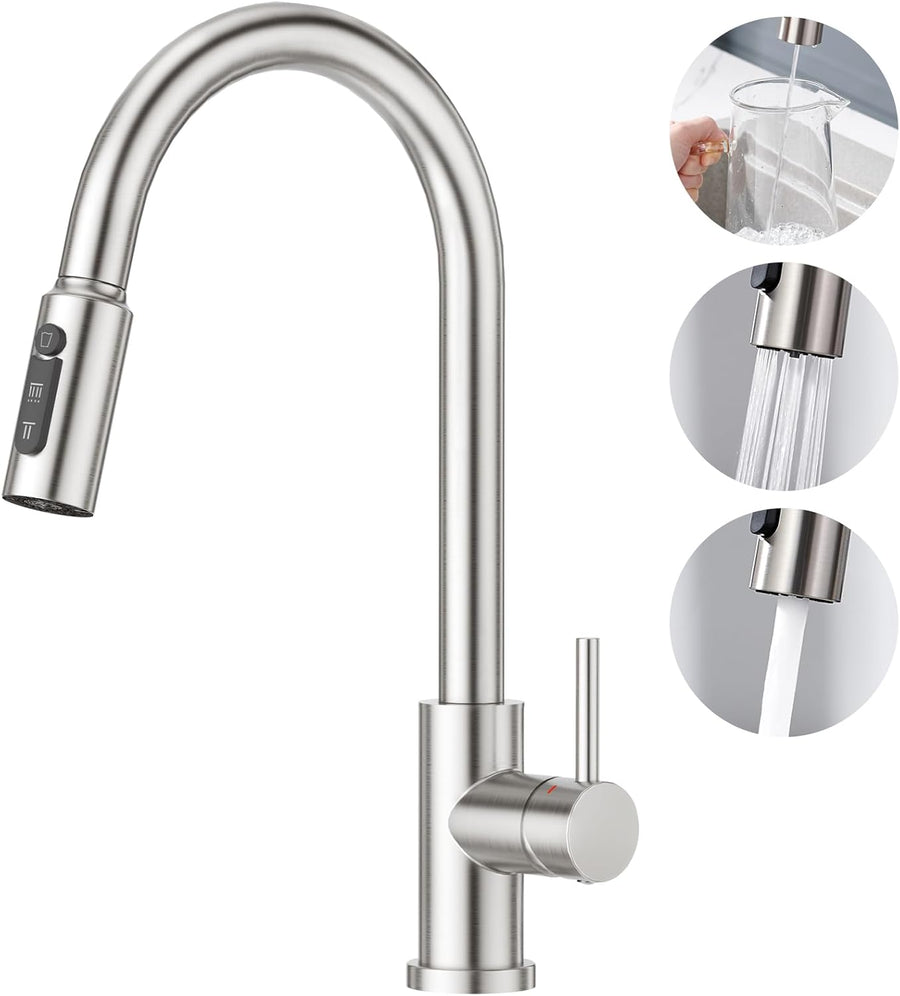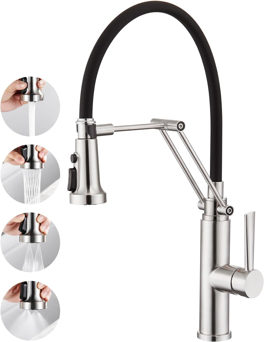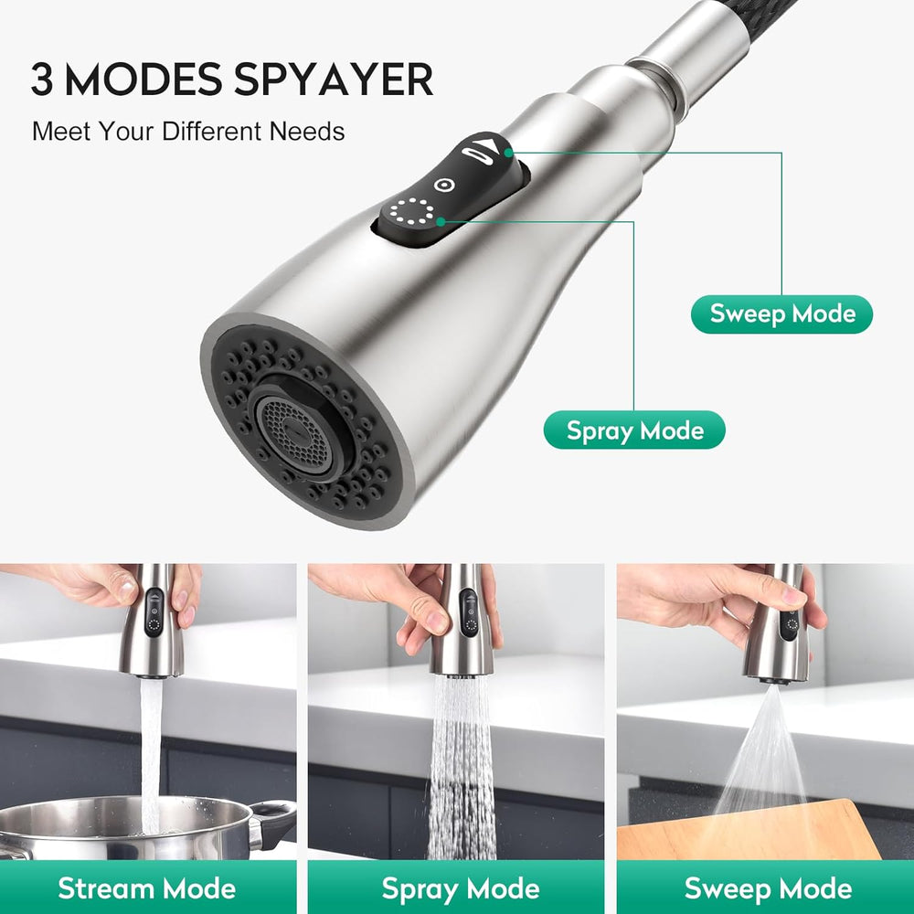 CREA Wasserhahn Küche mit 3 Funktionen Brause, Hochdruck Küchenarmatur mit Ausziehbarer Brause, 360°