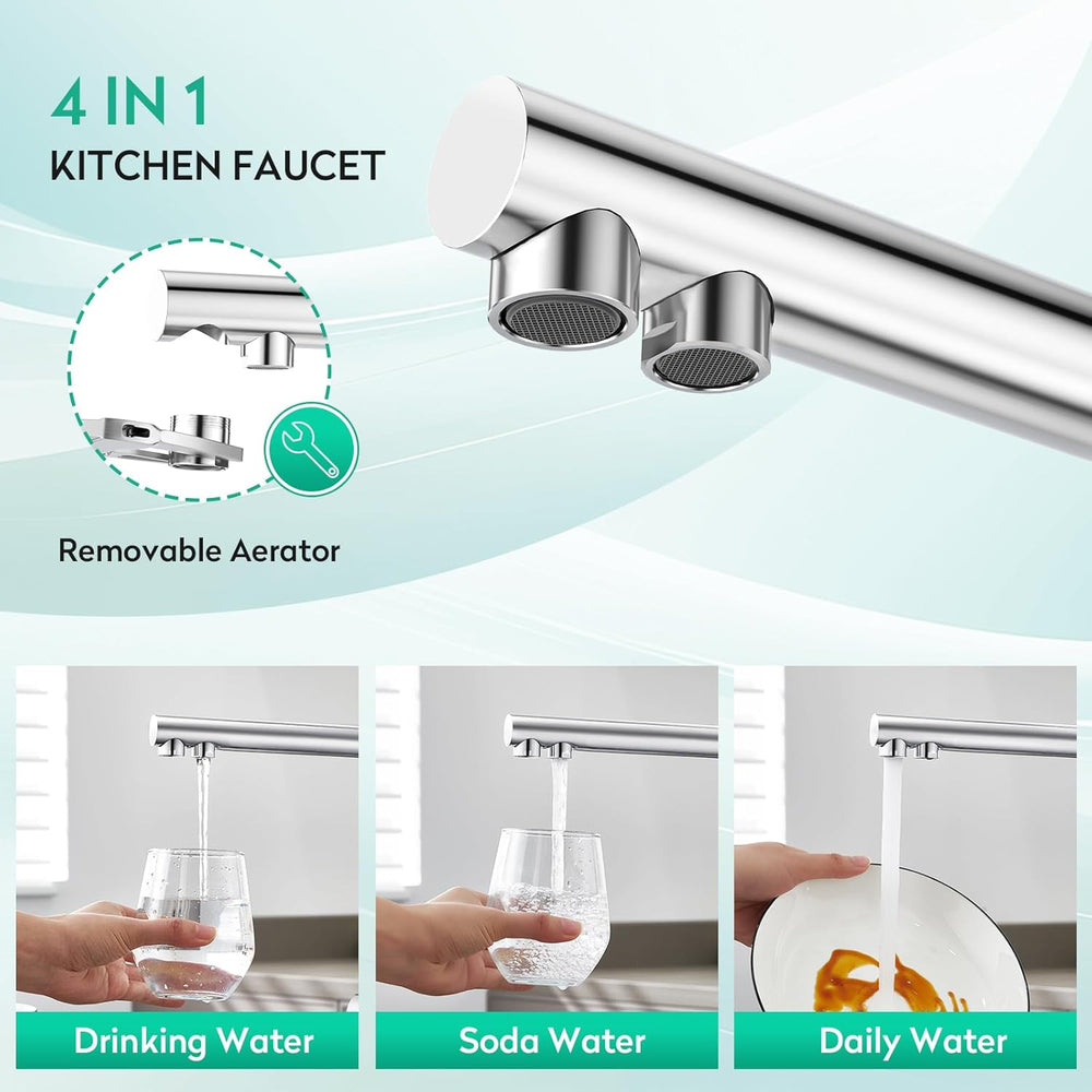 CREA 4 Wege Wasserhahn Küche, Küchenarmatur mit Sodawasser, 360° Drehbar Vier Wege Mischbatterie Küc