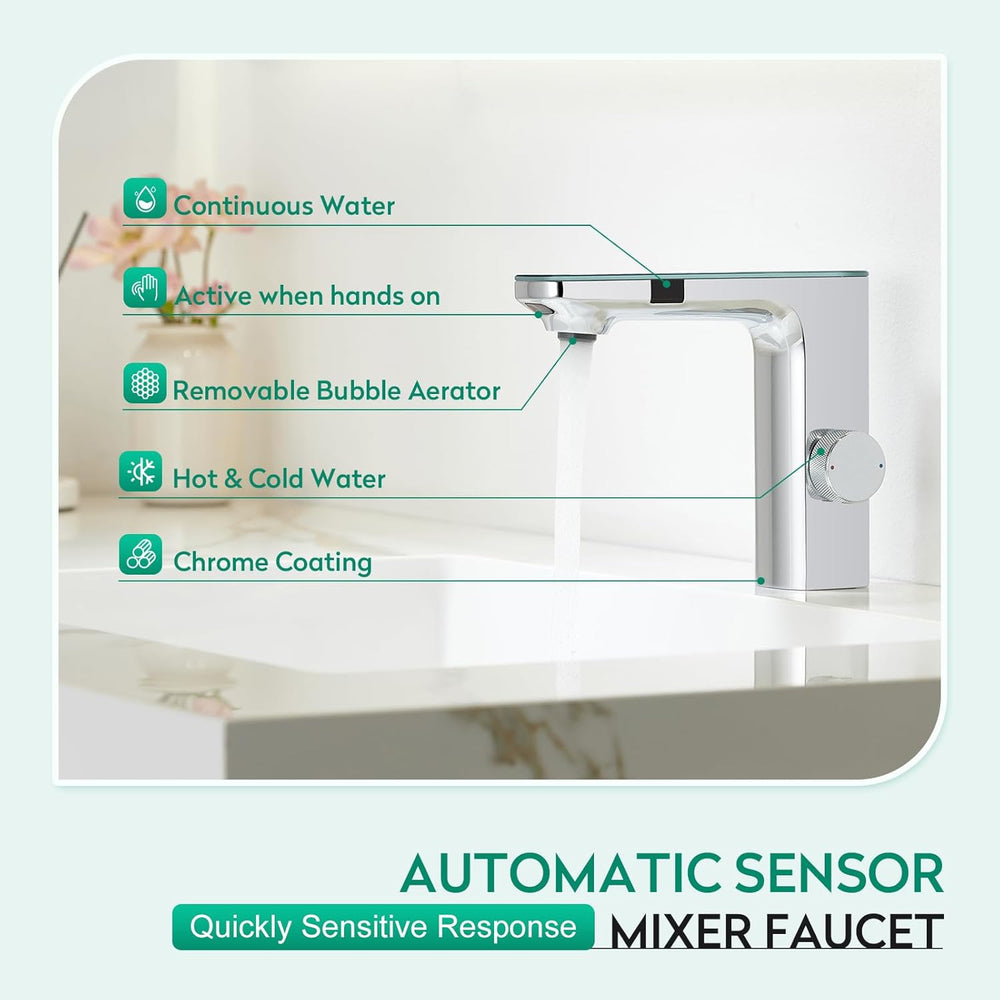 CREA Infrarot Sensor Wasserhahn Bad, Automatisch Sensor Mischbatterie Bad, Berührungsloser Waschtisc