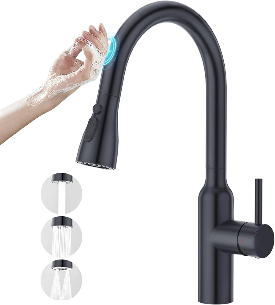 CREA Touch Sensor Wasserhahn Armatur Küche Ausziehbar, Küchenarmatur mit Brause Drei Wasserstrahlart