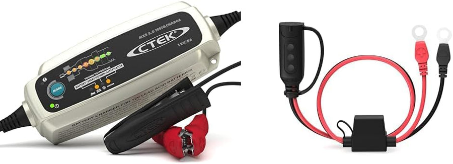 CTEK MXS 5.0 Test & Charge, Batterieladegerät 12V, Batteriepfleger & Indicator Eyelet M6, LED-Anzeig