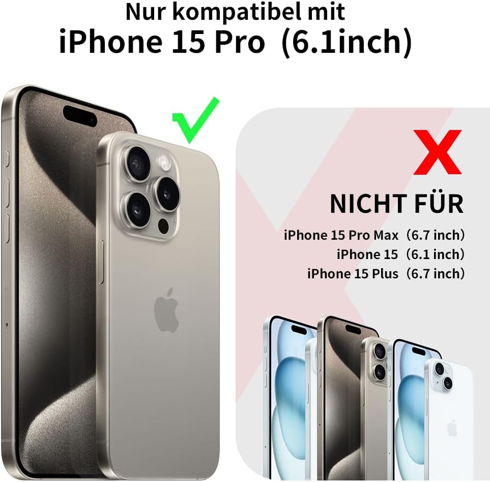 CUSTYPE für iPhone 15 Pro Hülle mit Band, Geldbörse Hülle aus Mikrofaserleder, Handykette Hülle für