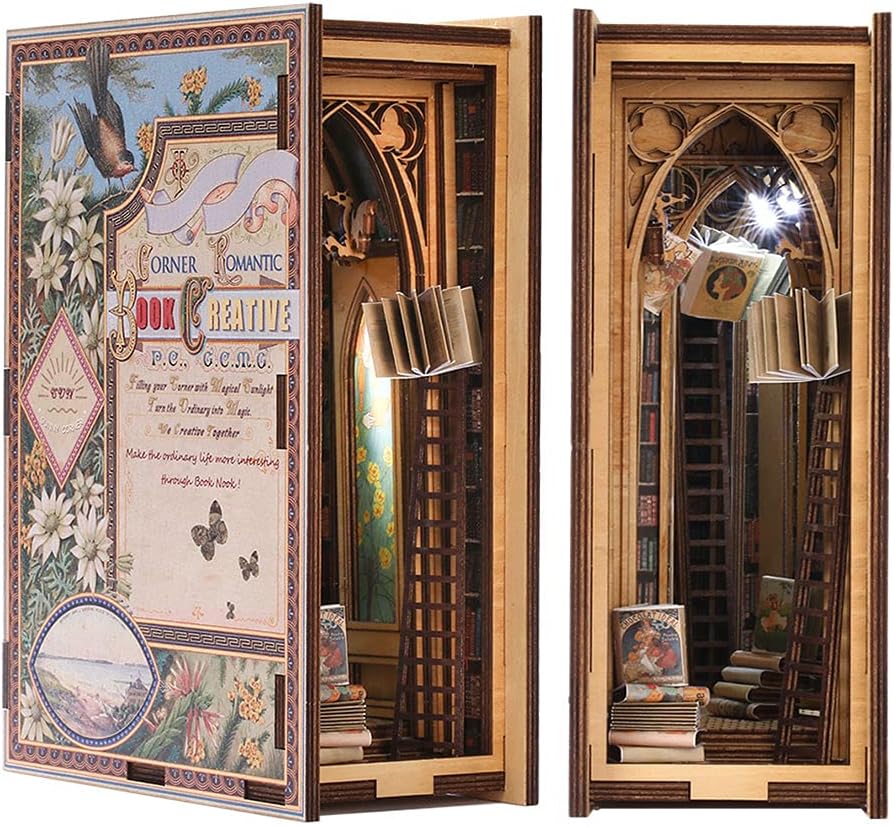 CUTEBEE Book Nook Kit – DIY Puppenhaus Miniatur Haus Buchstütze | Handmade Deko für Bücherregal | Kr