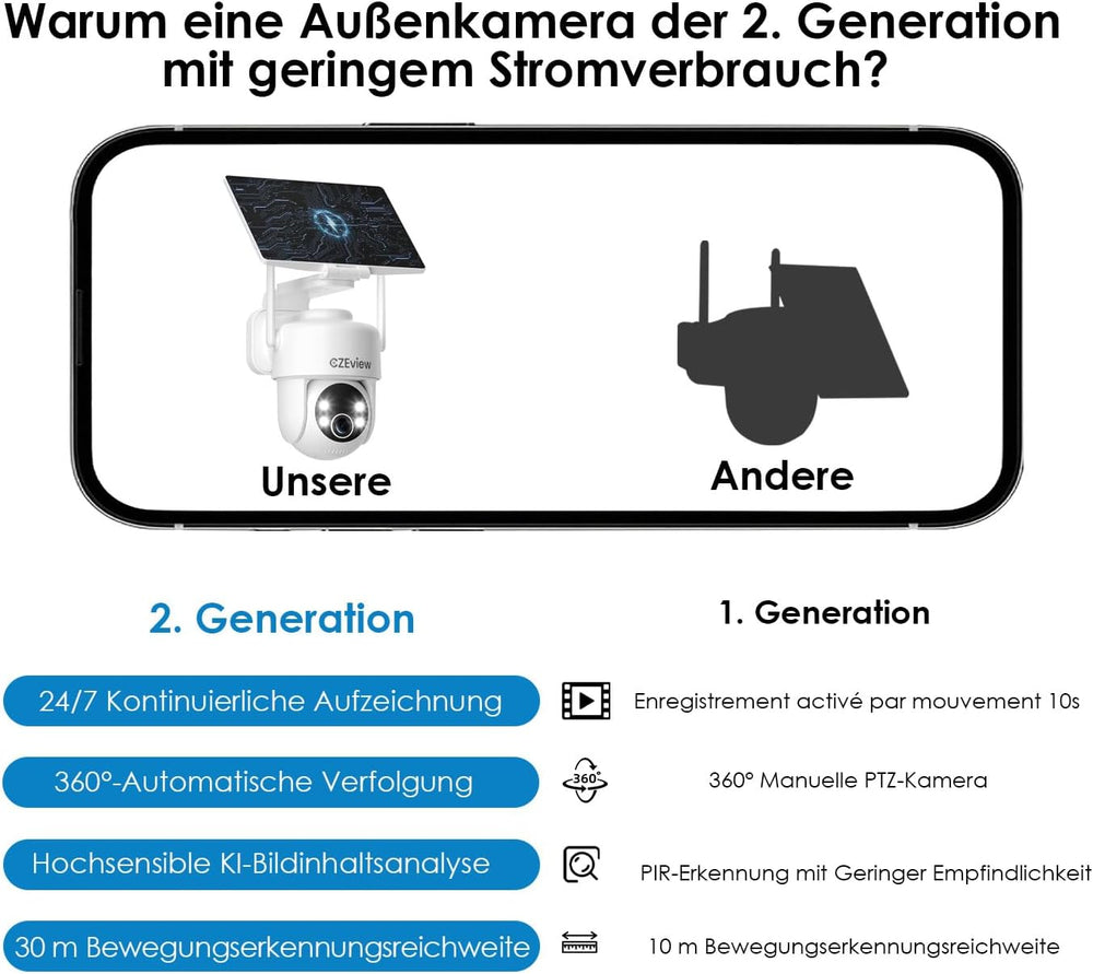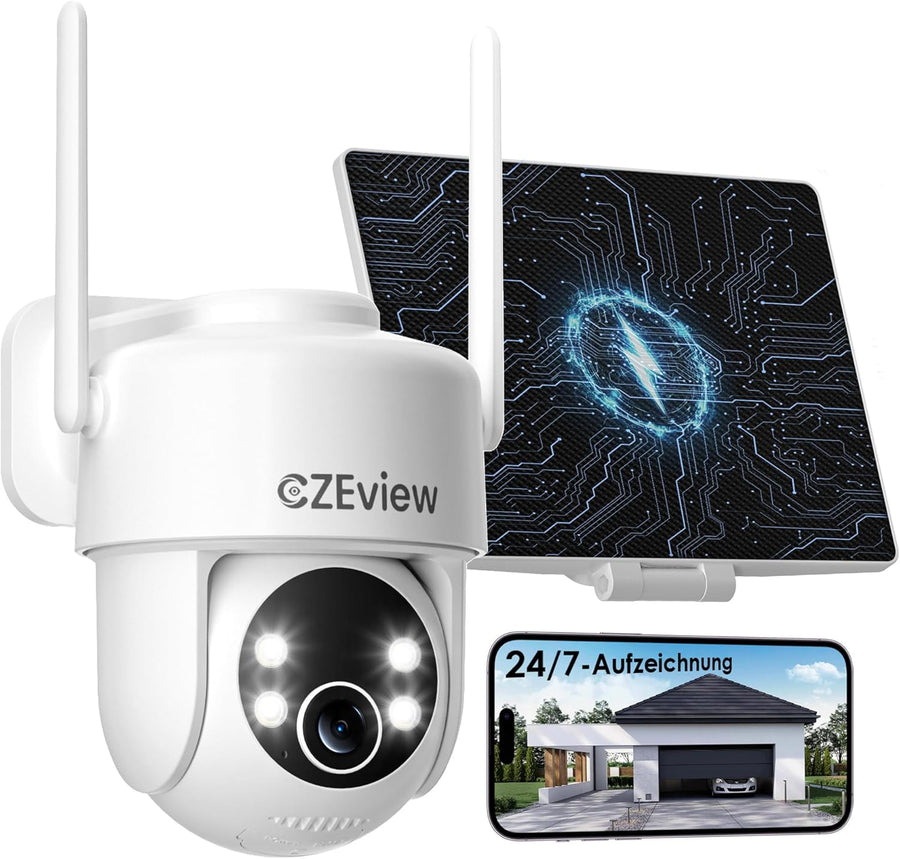 Alles in 1 Überwachungskamera Aussen Akku Solar, 2K, 100% Kabellos, 360° PTZ Kamera Überwachung Auss
