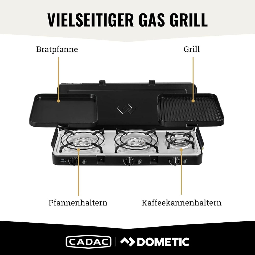 CADAC - 3 Cook Turbo FFD Deluxe - 50mBar - Grillen - Tragbare Grills - Kochfläche aus Edelstahl - In