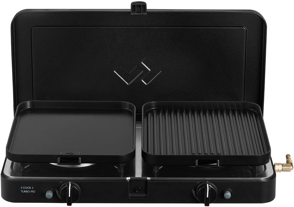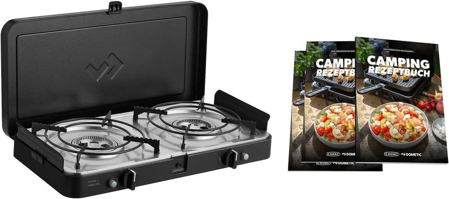 CADAC - 2 Cook 3 Turbo Stove + Camping-Kochbuch - Gas Tischgrill mit 2 Brennern + Rezeptbuch - Outdo