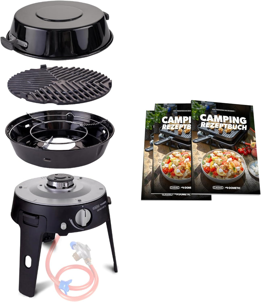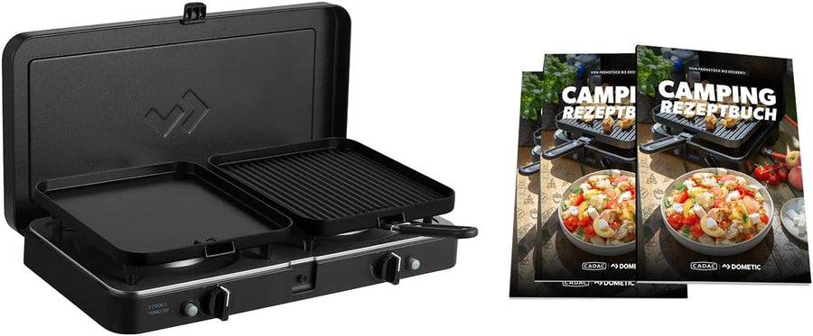 CADAC - 2 Cook 3 Turbo Deluxe und Camping-Kochbuch - Gas Tischgrill mit 2 Brennern und Rezeptbuch -
