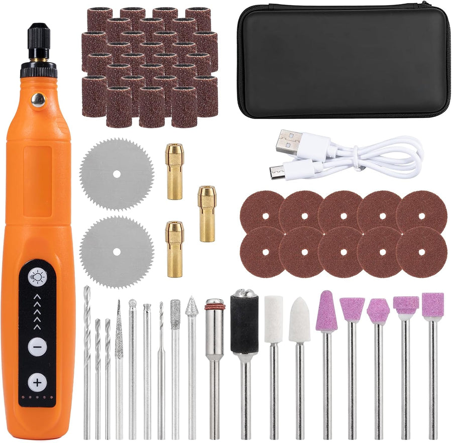 Carehabi Multifunktionswerkzeug Akku, mit LED-Licht, 3 Gang Graviergerät(5000-15000rmp),3.7v Mini Dr