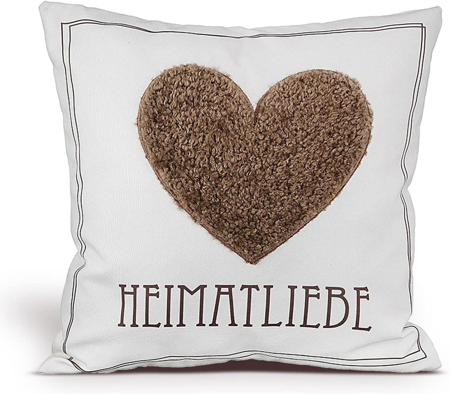 Sofakissen Dekokissen 45 x 45 cm Herz o. Hirsch Stoff Creme braun Farbe mit Herz 1 Stück, Mit Herz 1