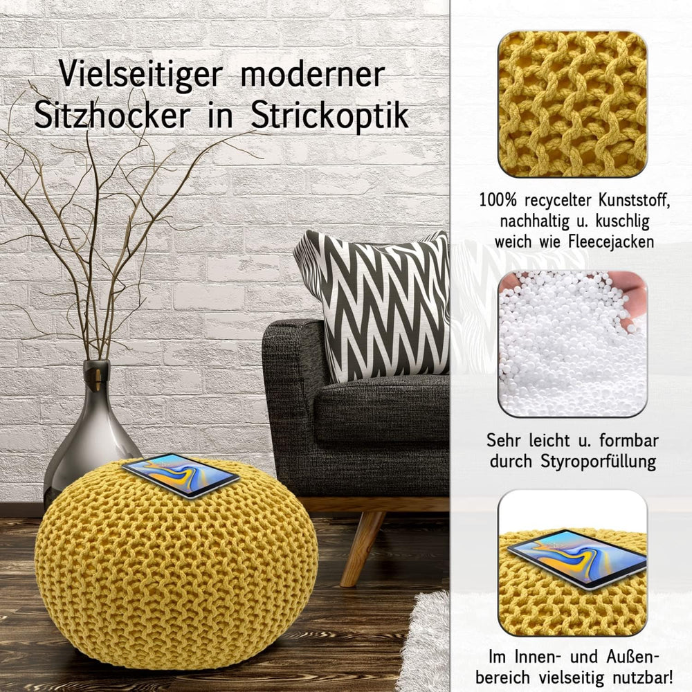 casamia Pouf Ø 55 o. 45 cm Sitzpouf Strickhocker Sitzpouf Bodenkissen nachhaltig Grobstrick Optik Gr