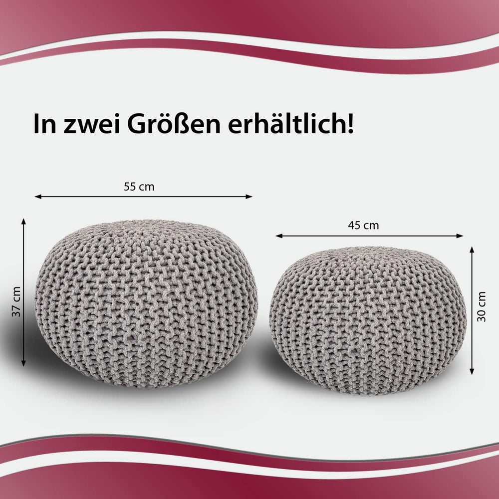 casamia Pouf Ø 55 o. 45 cm Strickhocker Sitzpouf Bodenkissen für Innen Indoor Grösse ø 55 cm, Farbe