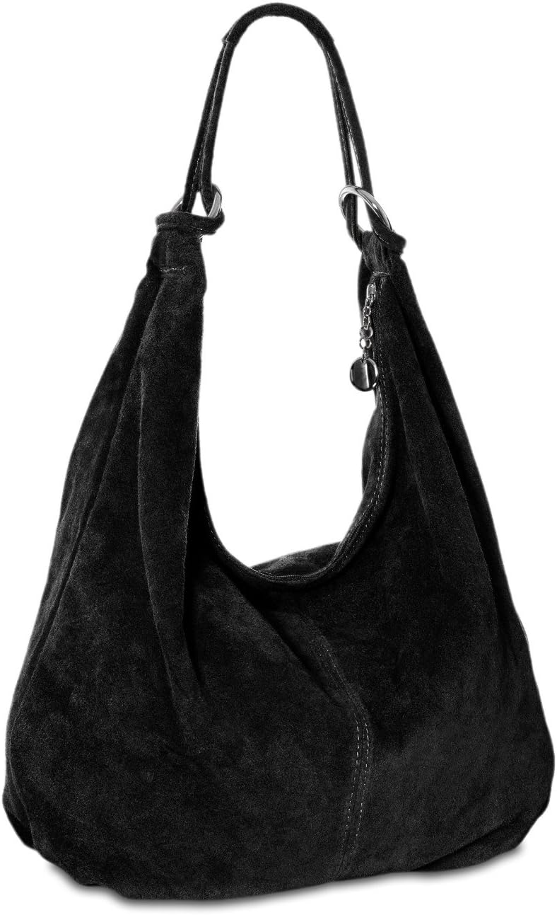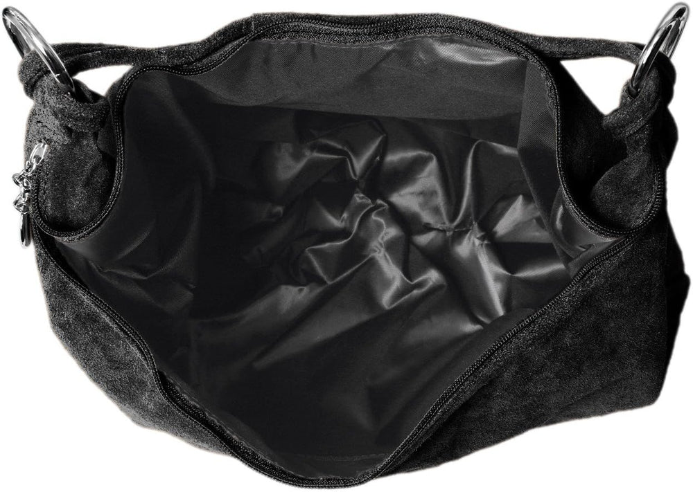 Caspar TL617 grosse Damen Vintage Veloursleder Tasche Schwarz, Schwarz
