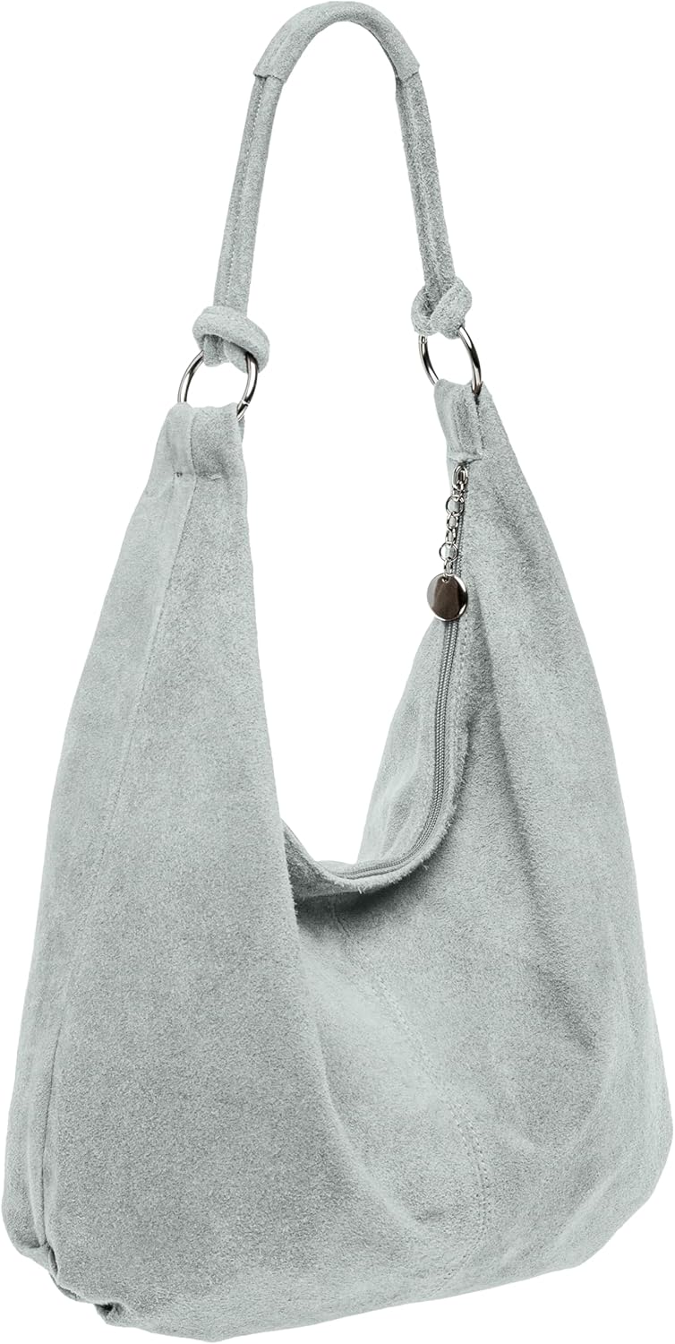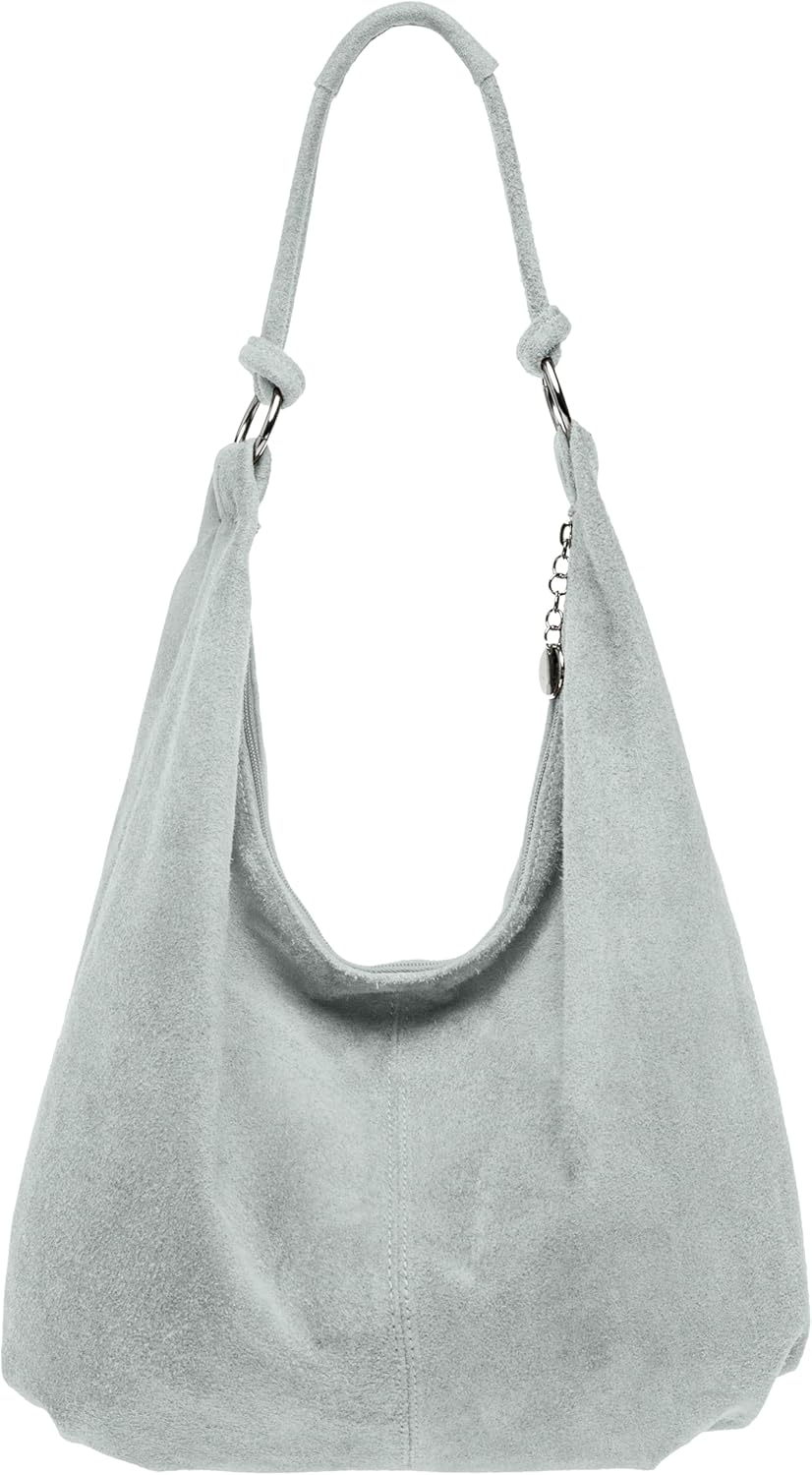 Caspar TL617 grosse Damen Vintage Veloursleder Tasche Hell Grau, Hell Grau