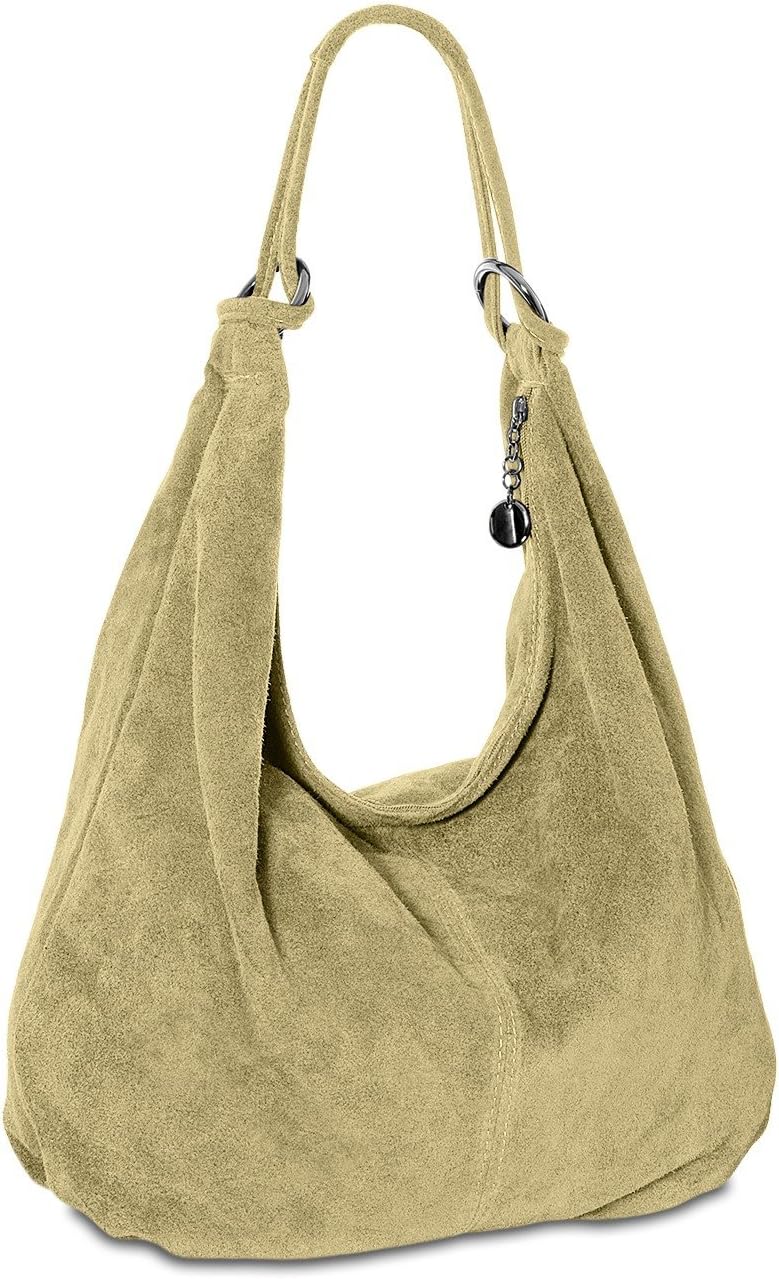 Caspar TL617 grosse Damen Vintage Veloursleder Tasche Beige, Beige