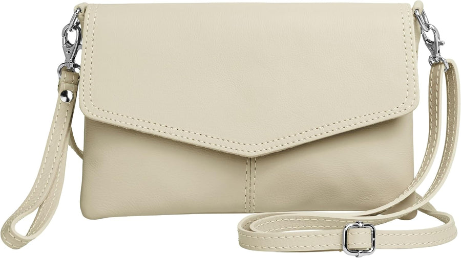 Caspar TA322 Damen Nappaleder Clutch Creme Weiss, Creme Weiss