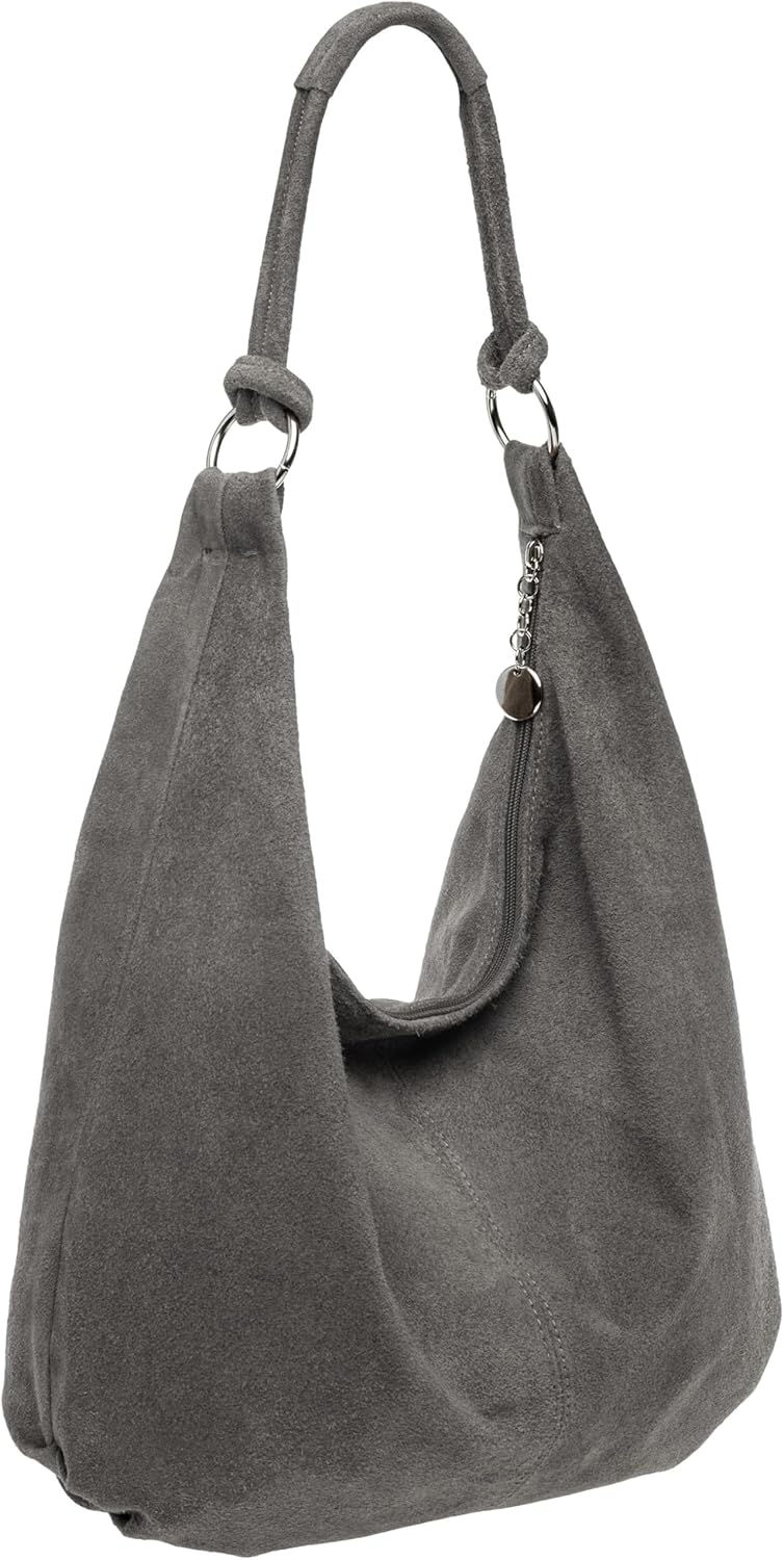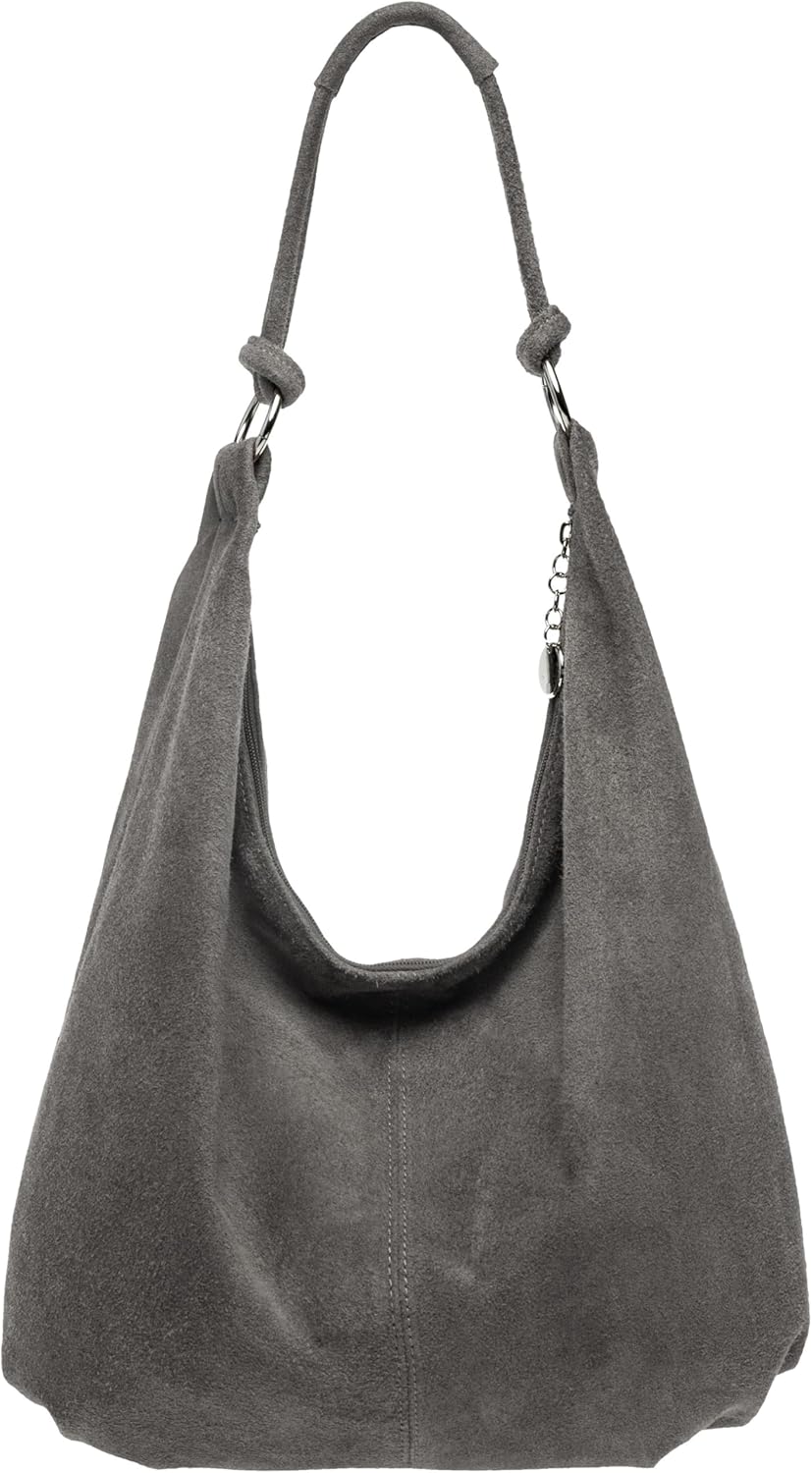 Caspar TL617 grosse Damen Vintage Veloursleder Tasche Dunkelgrau, Dunkelgrau